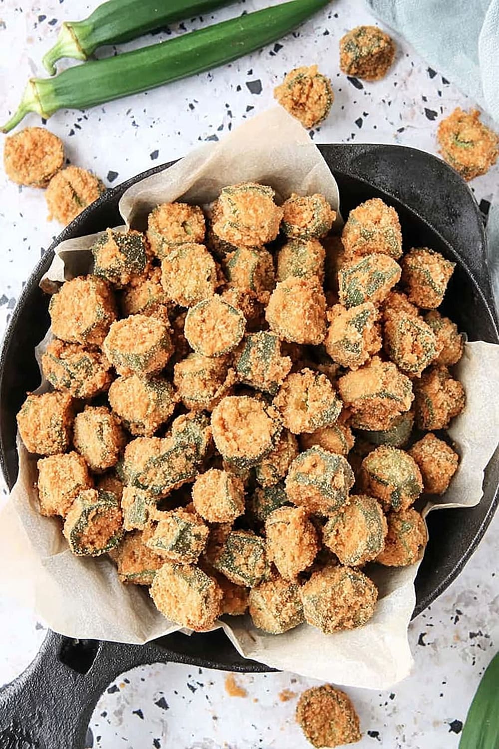 - Air Fryer: Spray breaded okra with oil and cook at 400°F for 8-10 minutes, shaking halfway