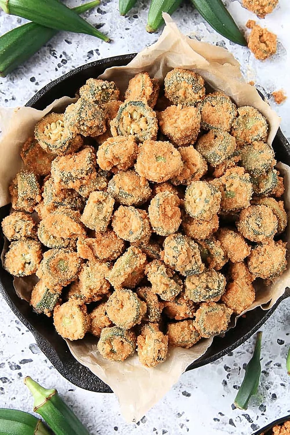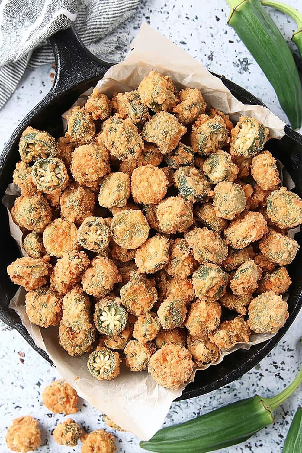 Build a backyard barbecue spread with pulled pork, fried okra, baked beans, and cornbread for casual entertaining. For Sunday dinner, pair with fried chicken, mashed potatoes, green beans, and biscuits. Create a fish fry feast featuring catfish, fried okra, hush puppies, and tartar sauce. Vegetarian option: Serve alongside black-eyed peas, collard greens, and cornbread for a satisfying plant-forward meal.