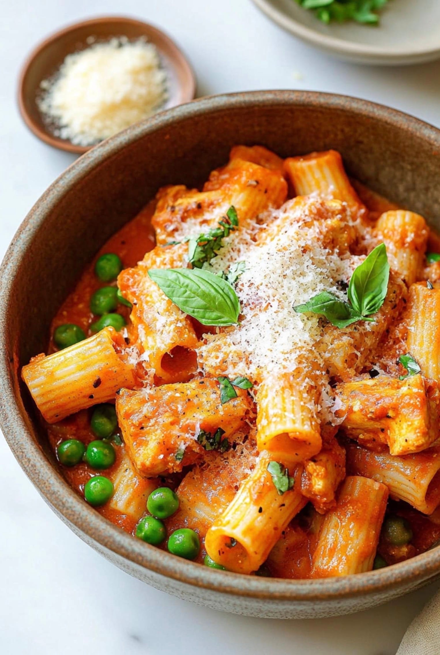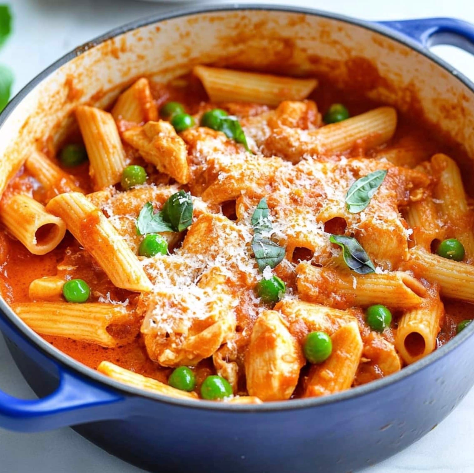 Spicy chicken rigatoni is a tasty pasta dish that’s fun to make at home. It has tender chicken, spicy sauce, and chewy rigatoni noodles. This recipe is easy to follow and takes only 30 minutes to make from start to finish.