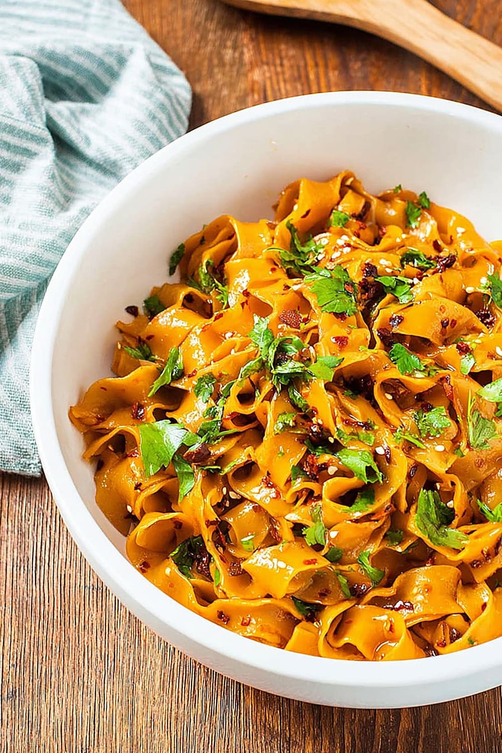 Leftover noodles keep in the refrigerator for up to 3 days in airtight containers. Reheat gently in the microwave with a splash of water, or better yet, enjoy them cold as a noodle salad. The chili oil can be made up to a week ahead and actually improves with time.