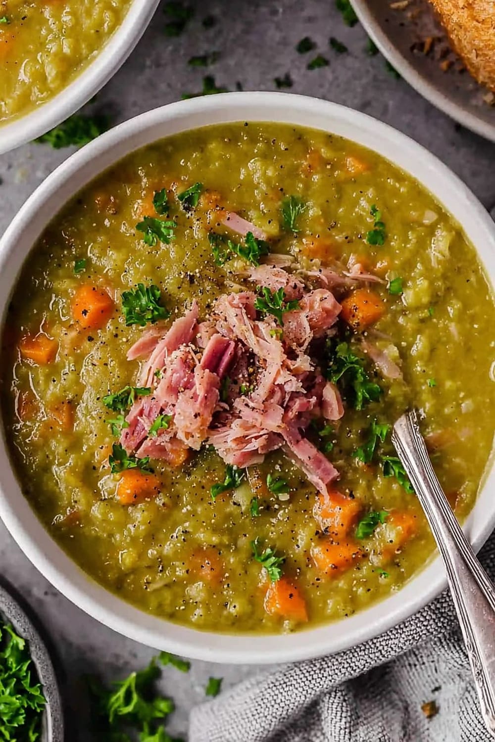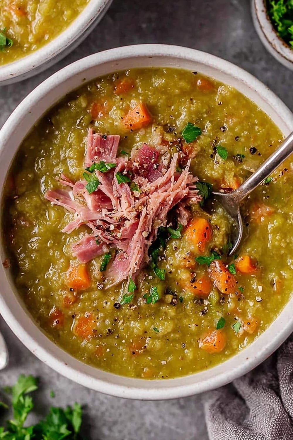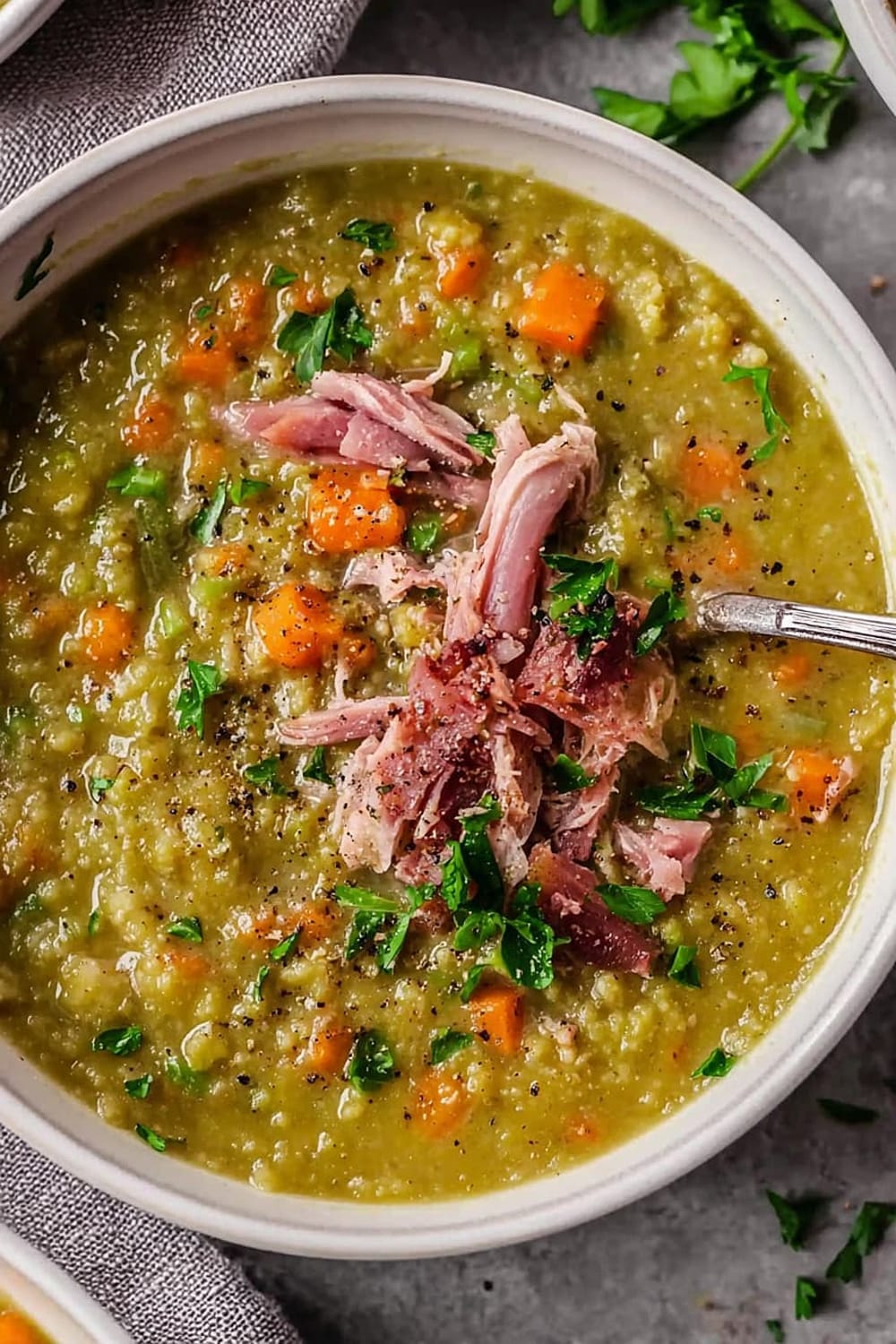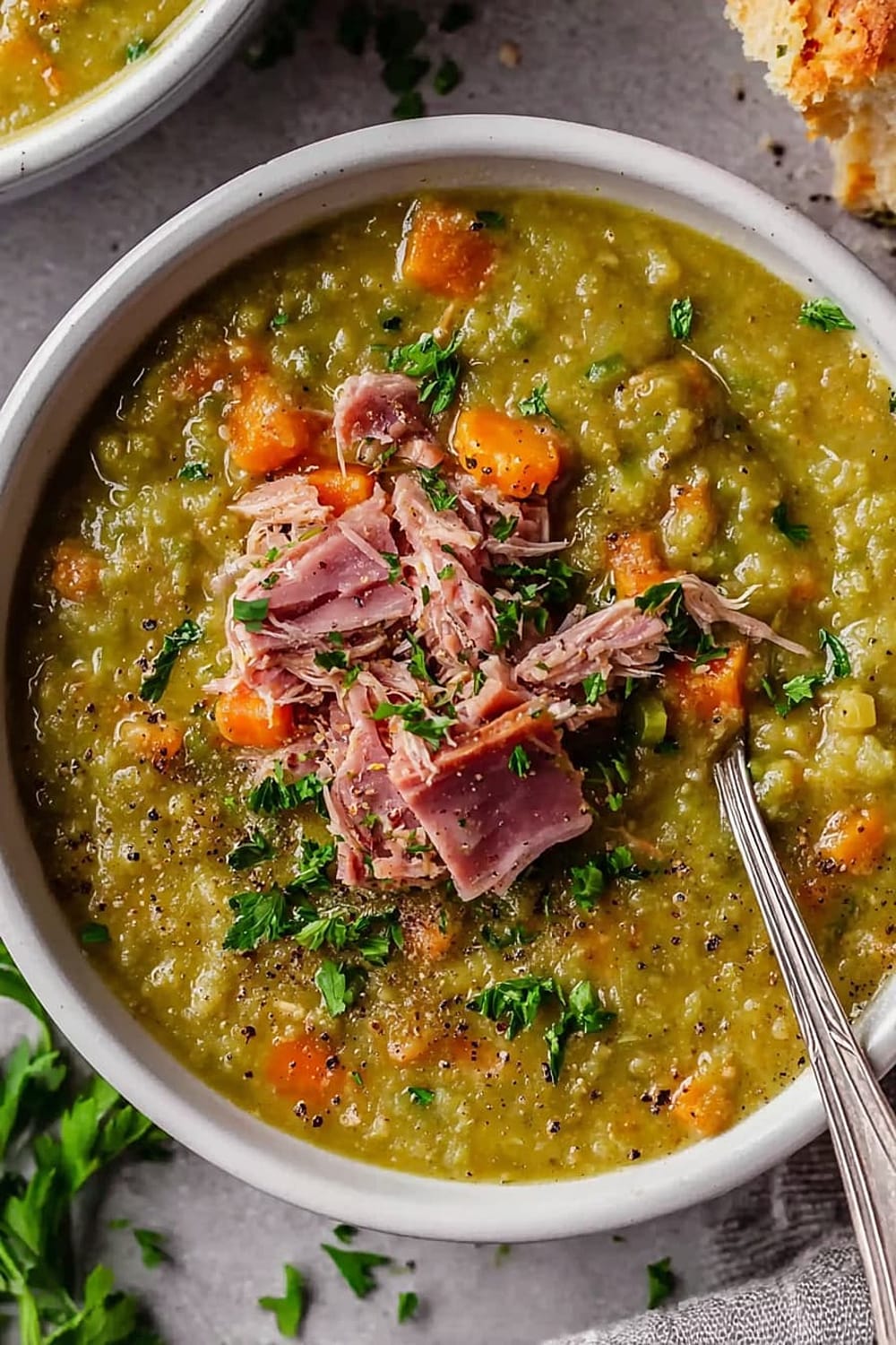 This split pea soup is basically comfort food’s greatest hits album – all the classics rolled into one steaming bowl of pure satisfaction.