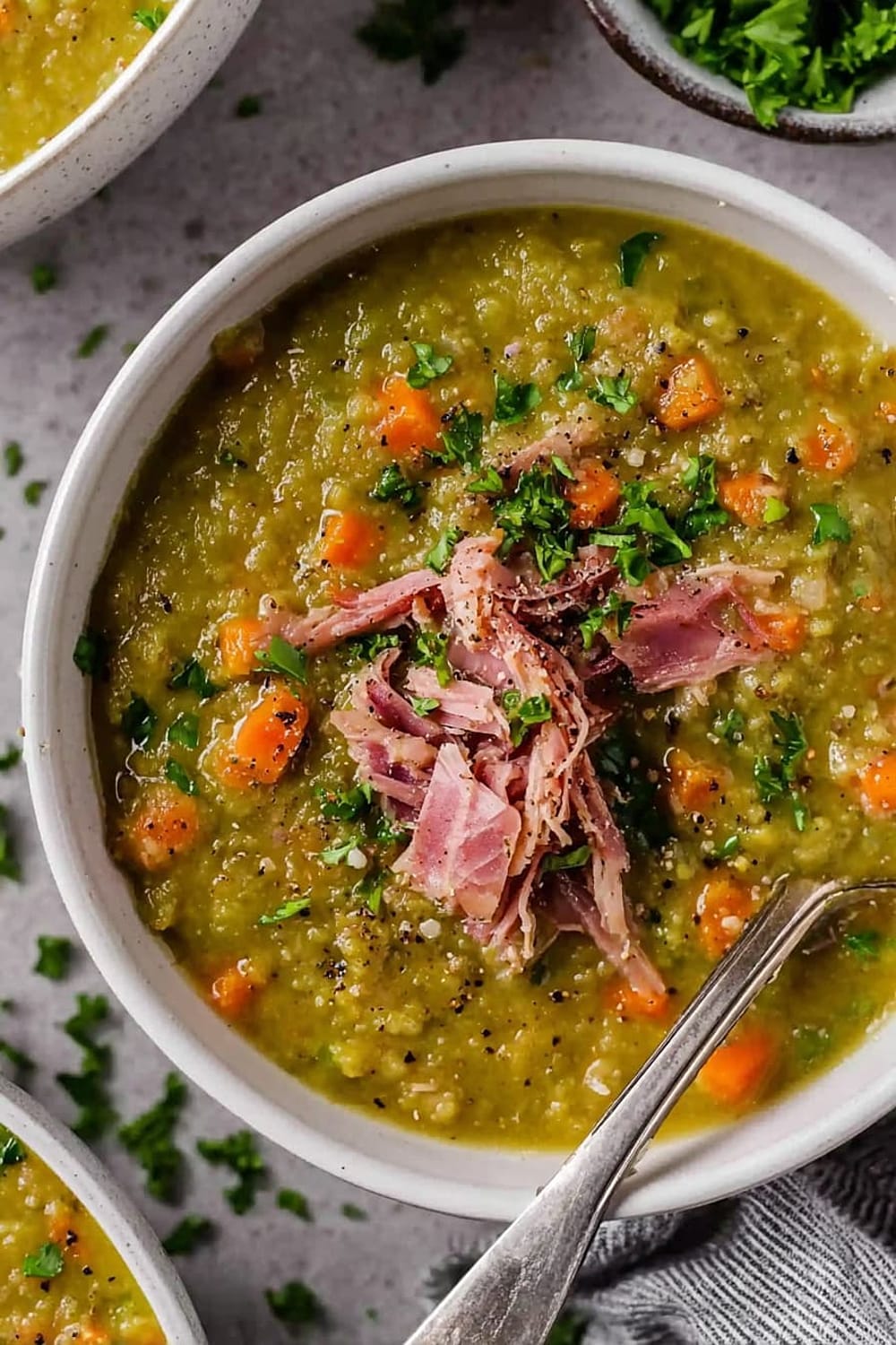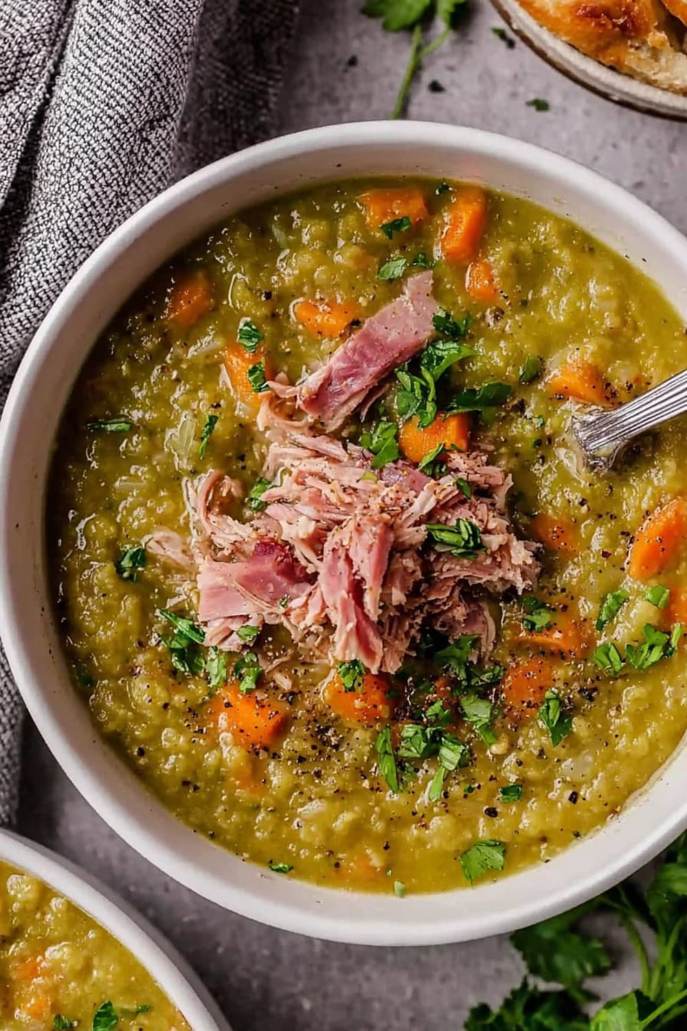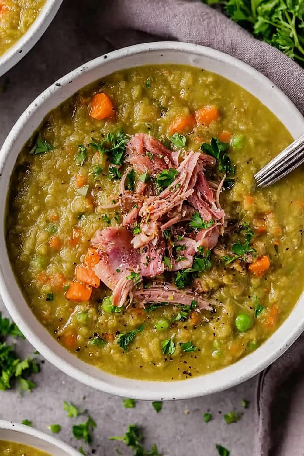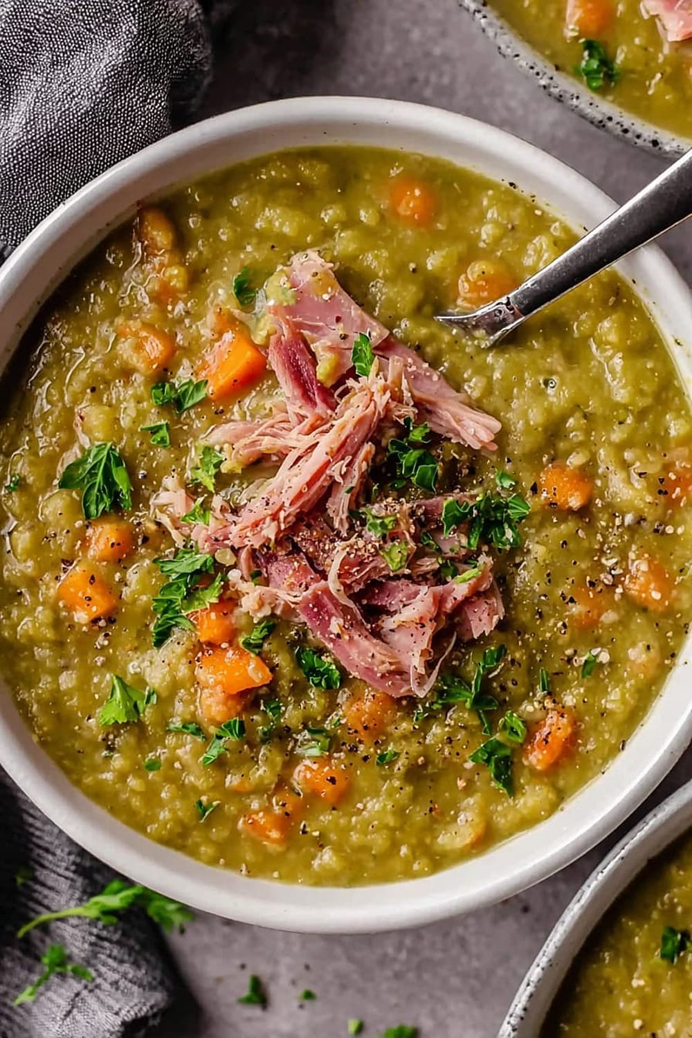This split pea soup is basically comfort food’s greatest hits album – all the classics rolled into one steaming bowl of pure satisfaction.