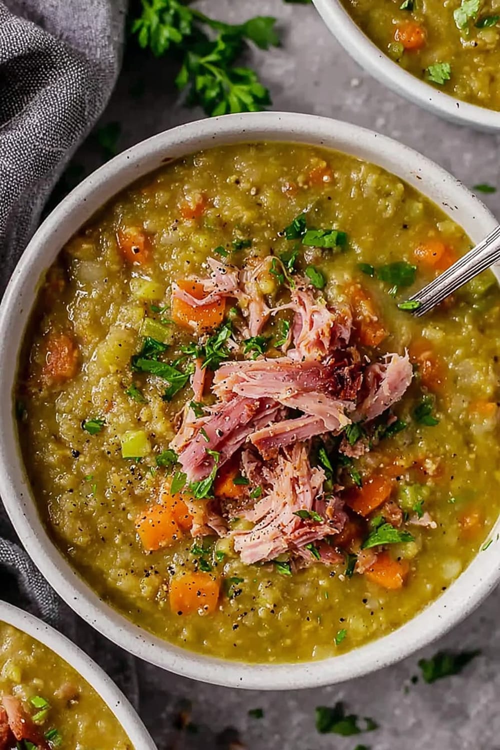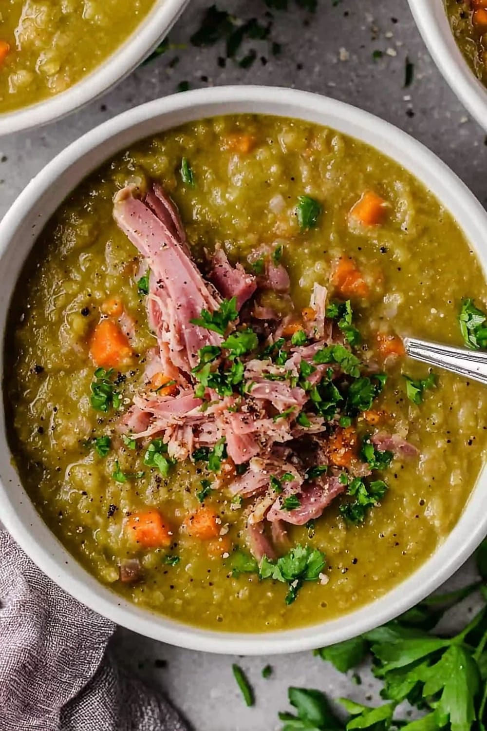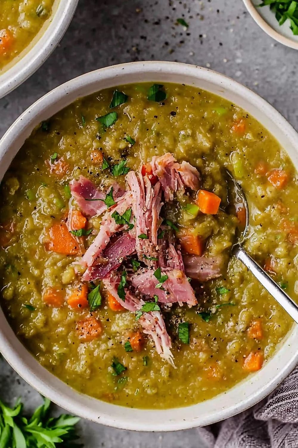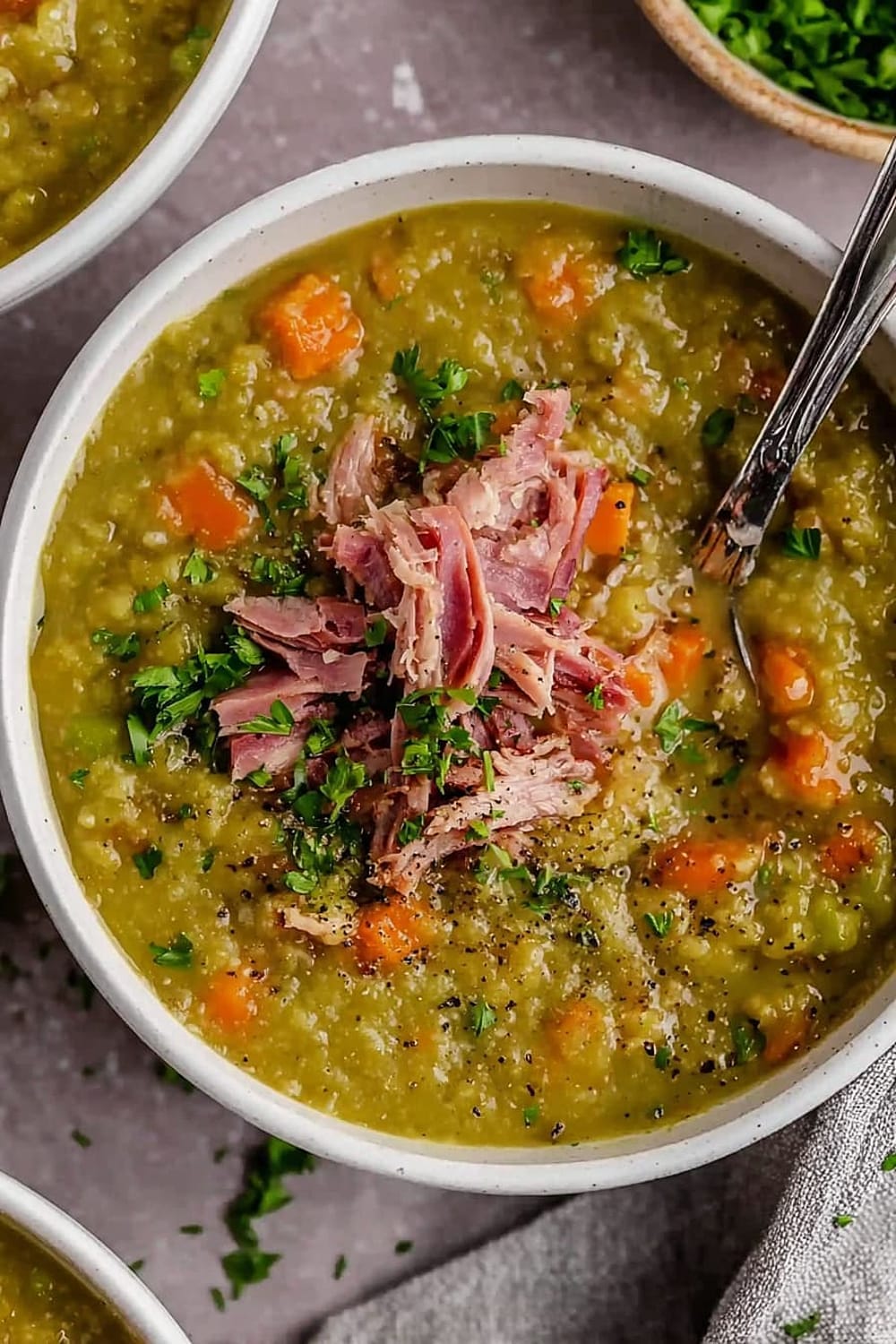 This split pea soup is basically comfort food’s greatest hits album – all the classics rolled into one steaming bowl of pure satisfaction.