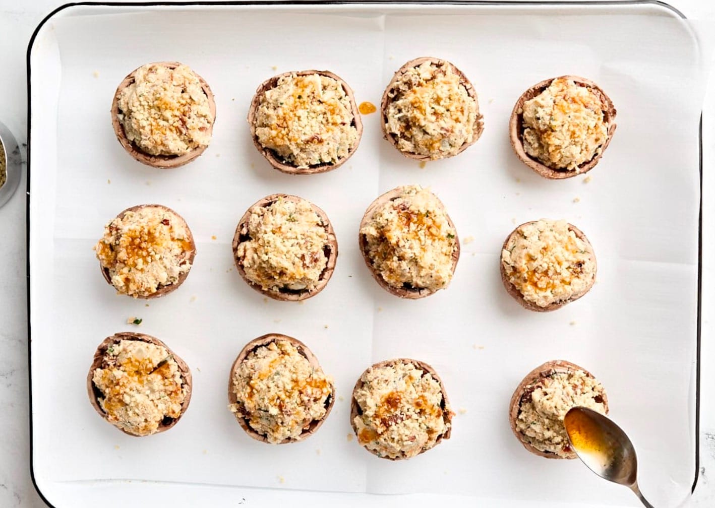 For a crispy top, broil the mushrooms for 1-2 minutes at the end of baking. Watch them closely to avoid burning.