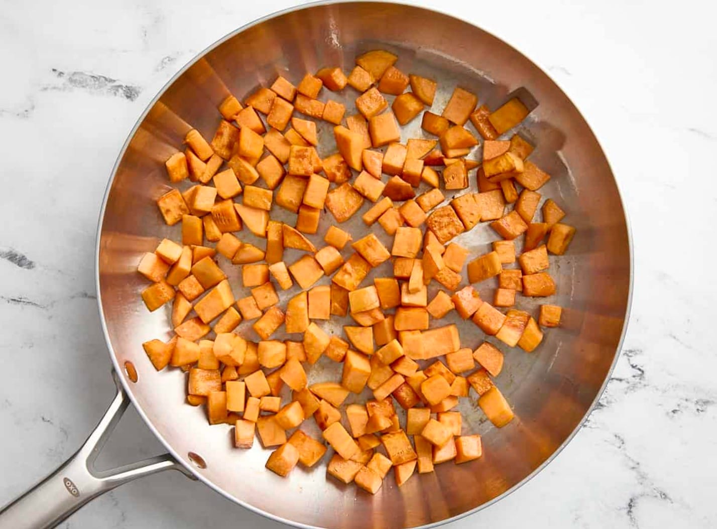 Don’t overcrowd the skillet. If needed, cook in batches to ensure the sweet potatoes get nicely browned. Stirring too often can prevent browning, so resist the urge to constantly move the veggies around.