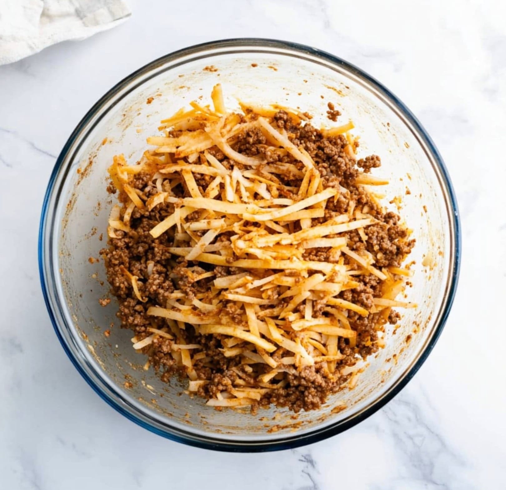Make sure you have all these ingredients ready before you start cooking. The ground beef and onion form the base of your casserole’s flavor. The taco seasoning adds a nice kick, while the hashbrowns give it a crispy texture.