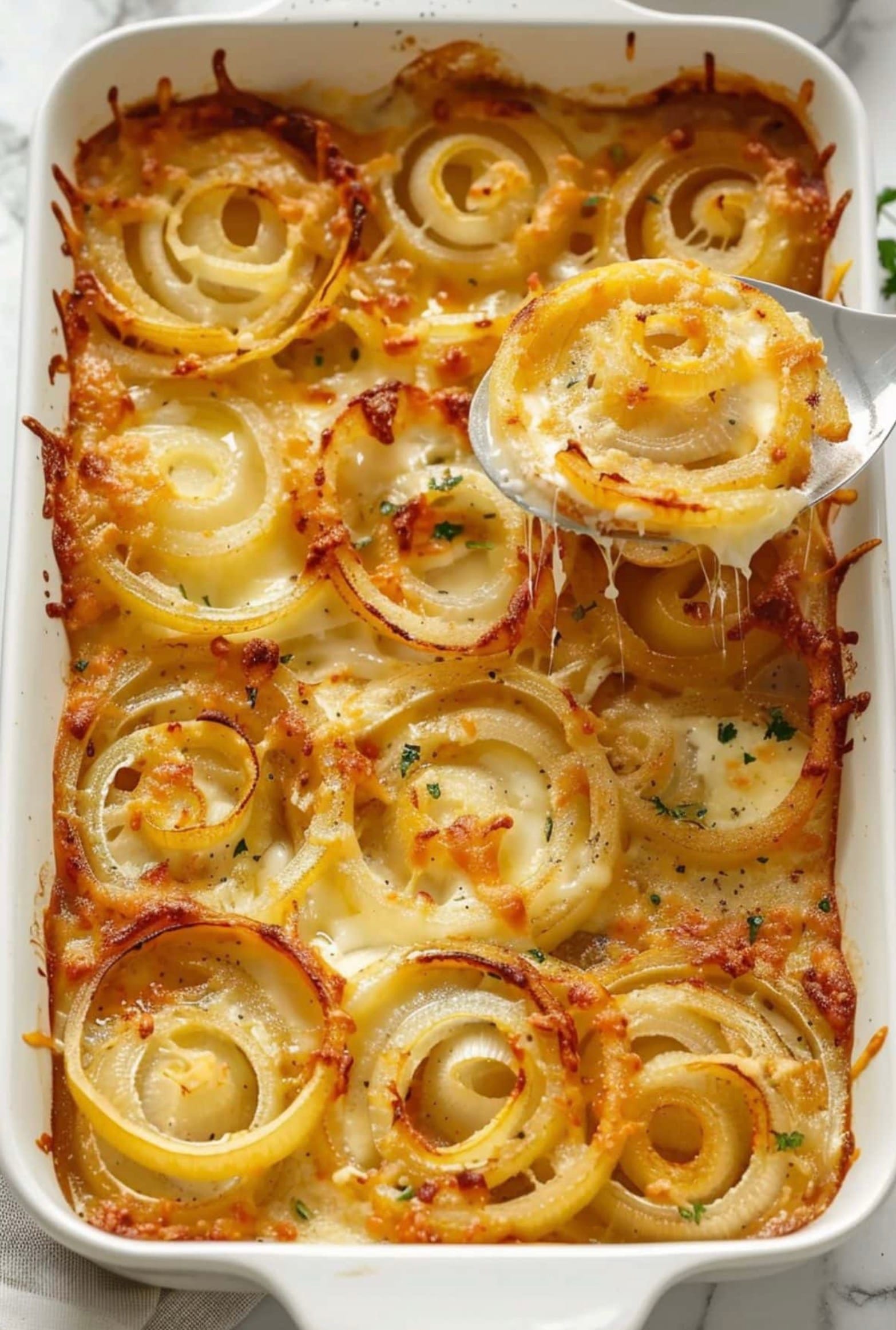 Bake for 35-40 minutes. The onions should be tender and the cheese melted and bubbly. For a crispy top, broil for 2-3 minutes at the end.