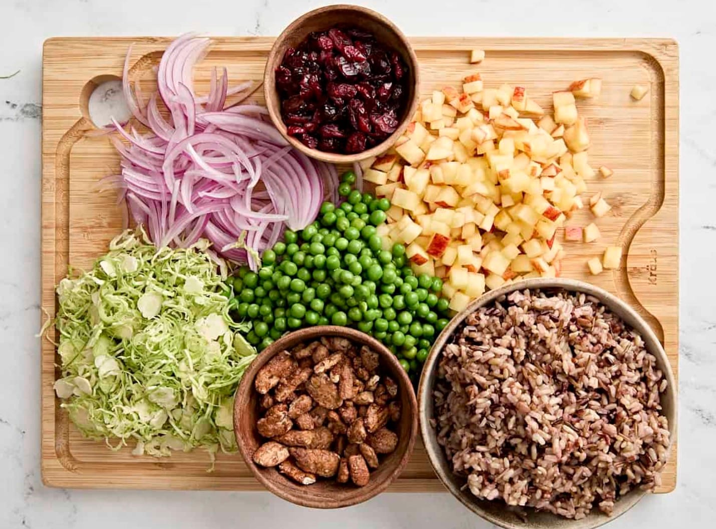 This Thanksgiving bowl recipe requires a variety of fresh ingredients and a homemade dressing. You’ll need items like wild rice, root vegetables, and seasonal fruits to create a hearty salad base. The maple cinnamon vinaigrette adds a perfect autumn flavor.