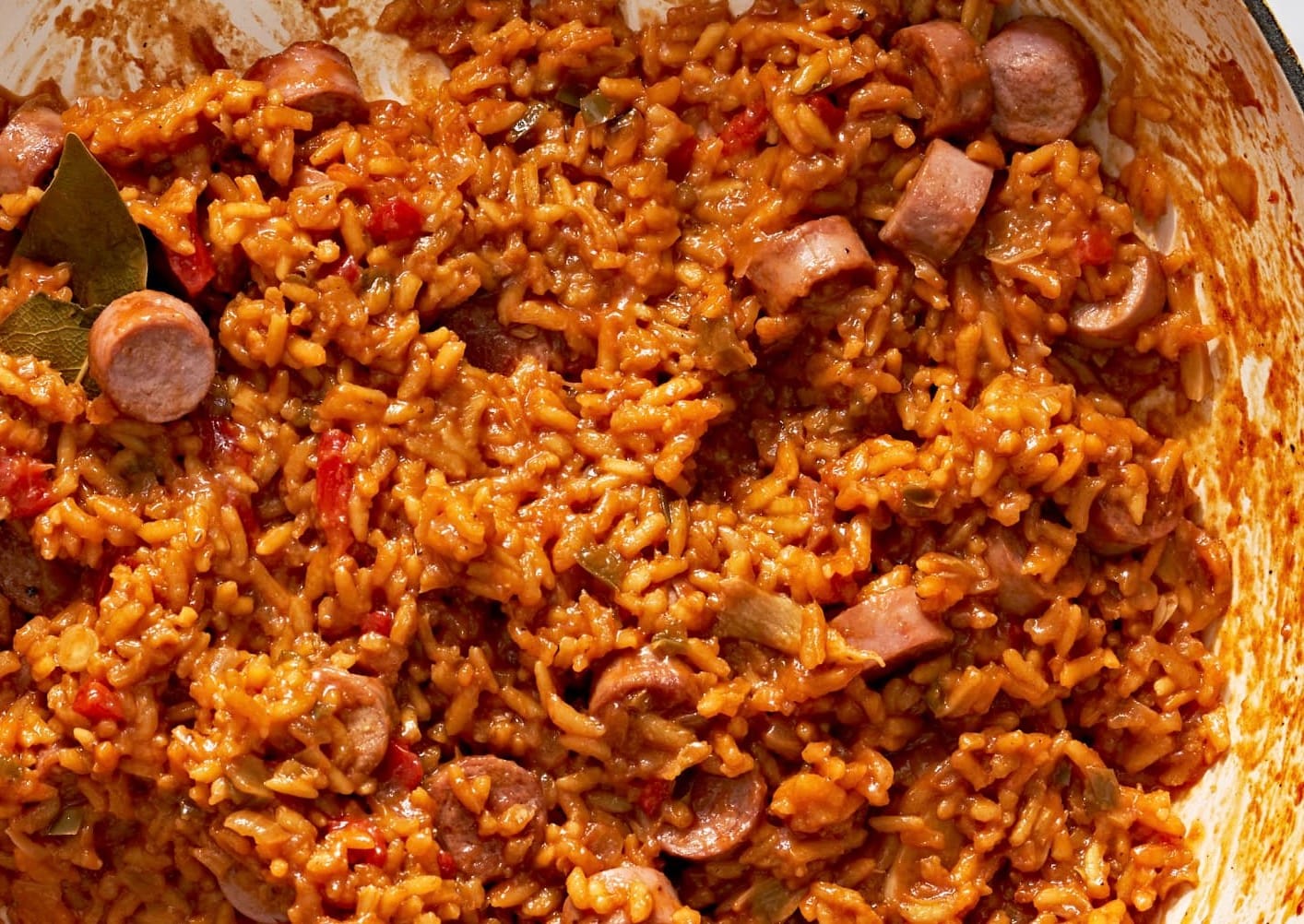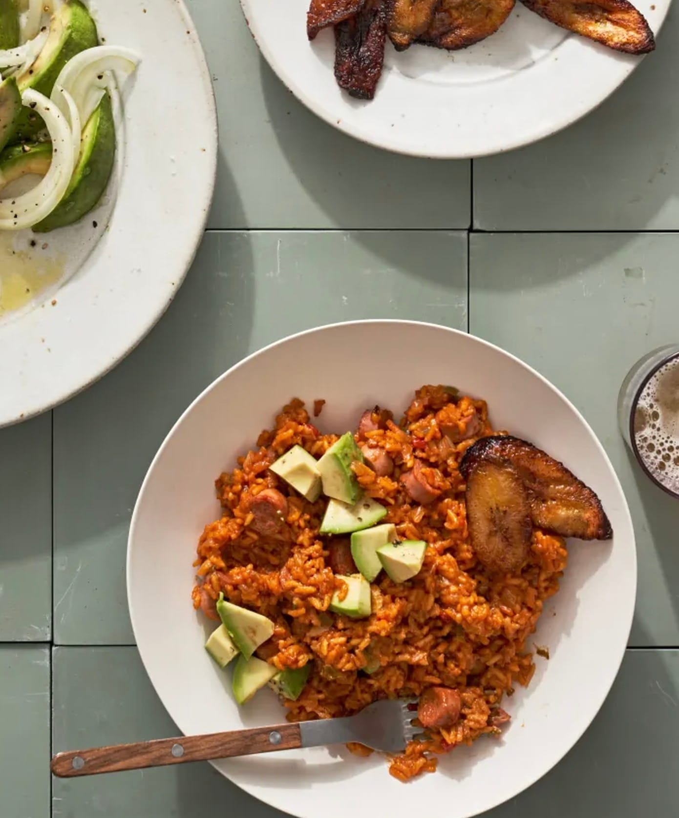 Your arroz con salchichas is ready! Serve with avocado and fried plantains if you like.