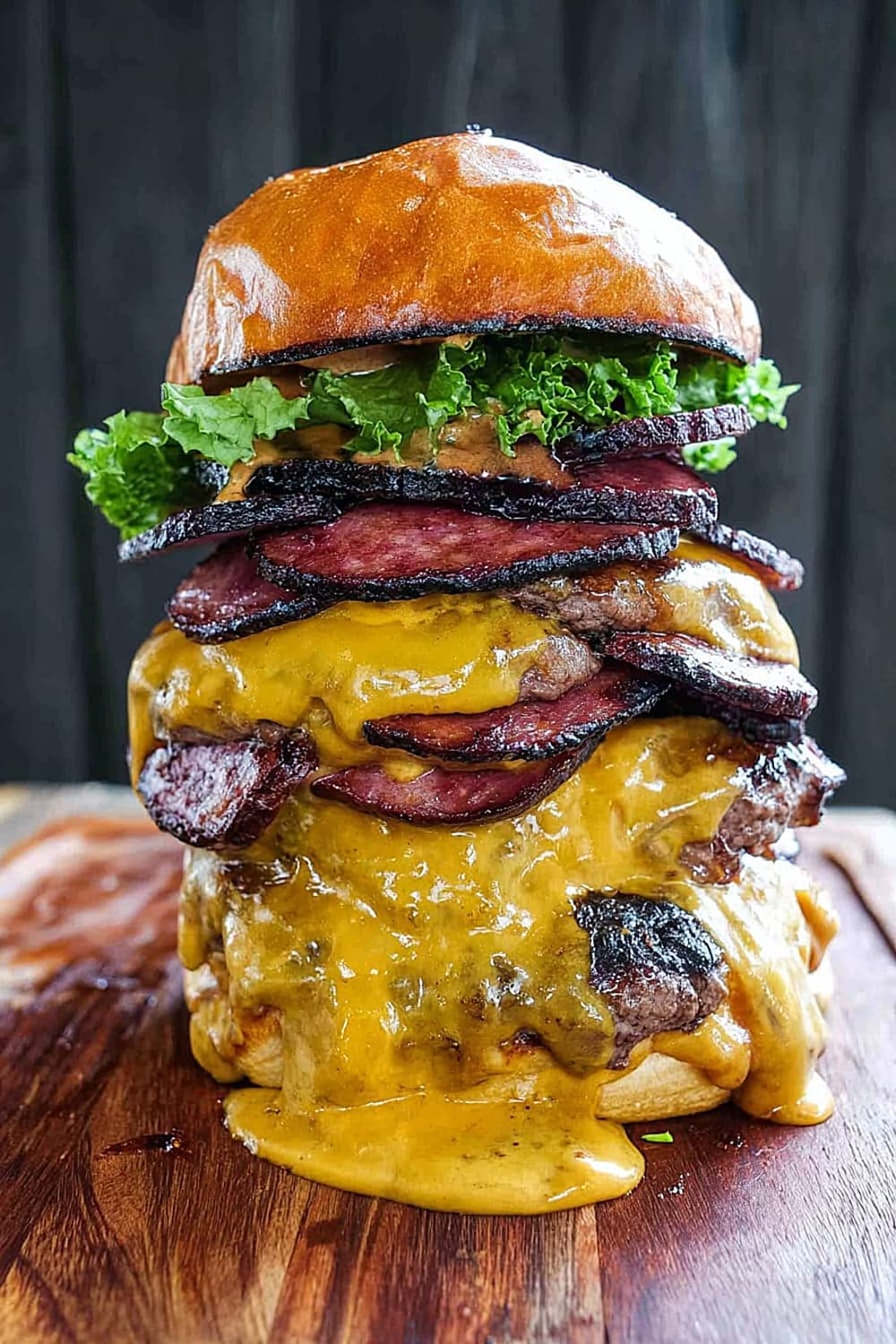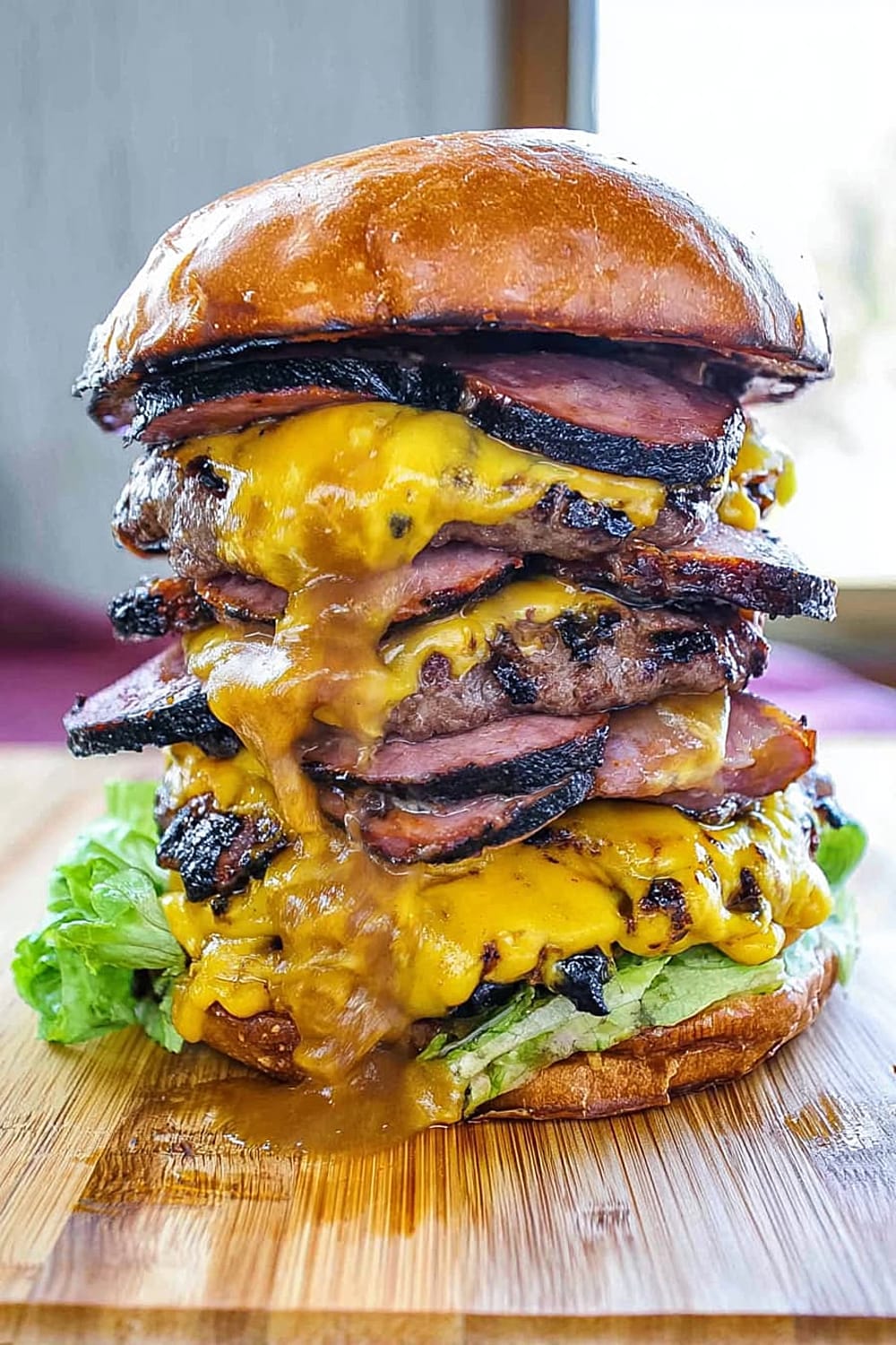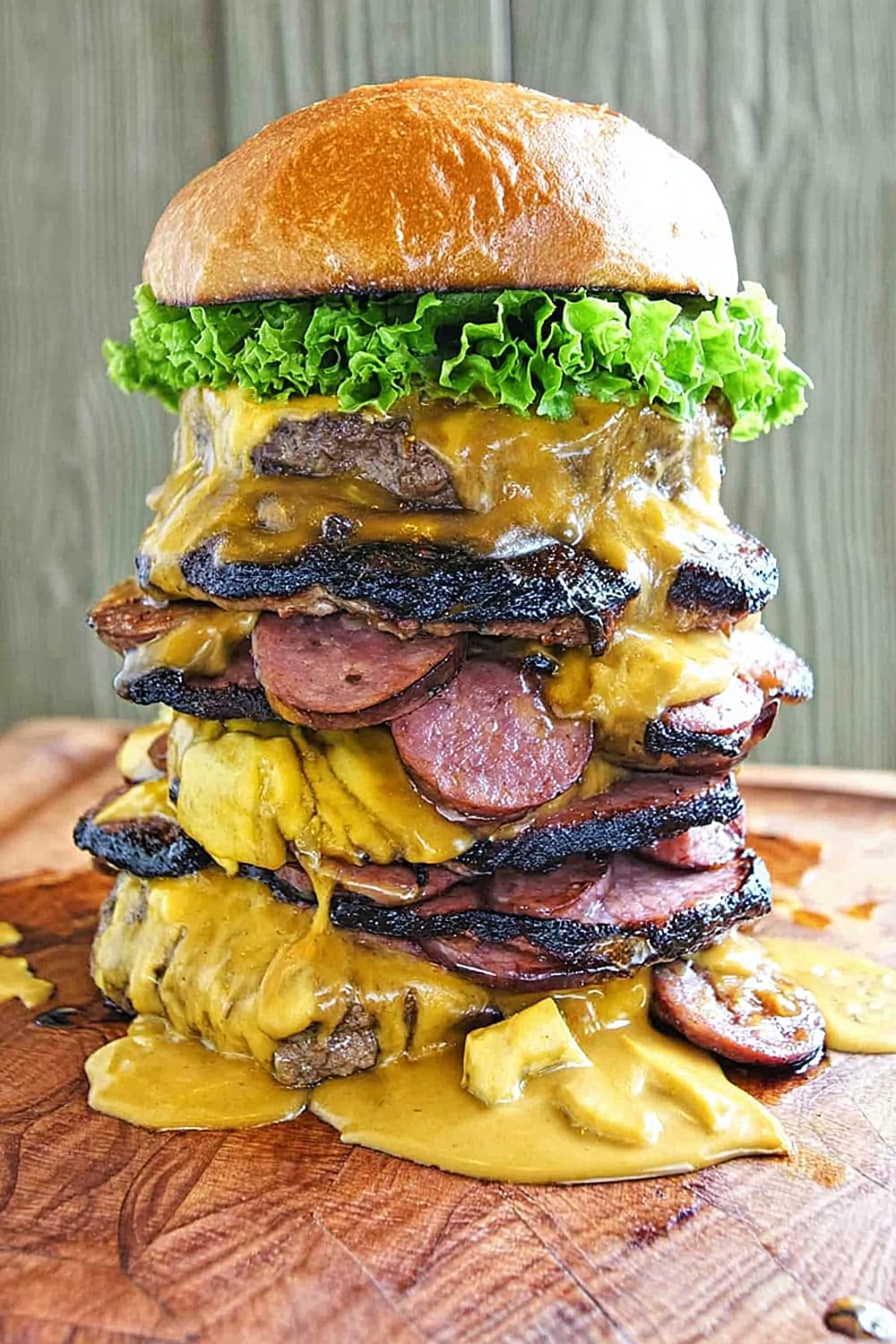 This isn’t just a burger – it’s a commitment to taking comfort food to its absolute, gloriously excessive limits, and your taste buds will thank you for every single smoky, cheesy, indulgent bite.