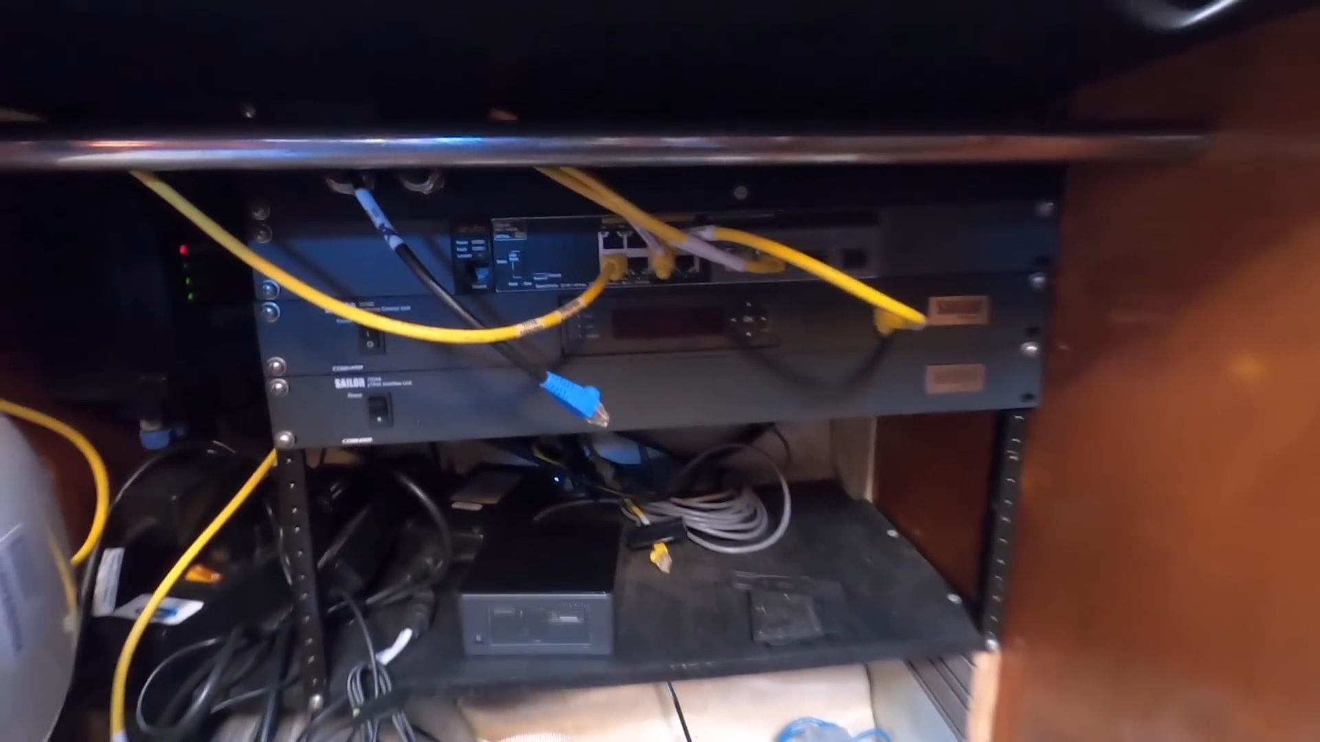 The navigation station showcases some truly impressive technology, including a single sideband ham radio that can communicate across thousands of miles when all other systems fail. But the real showstopper is the custom server rack Brian installed, beaming high-speed internet from space to anywhere on the planet.