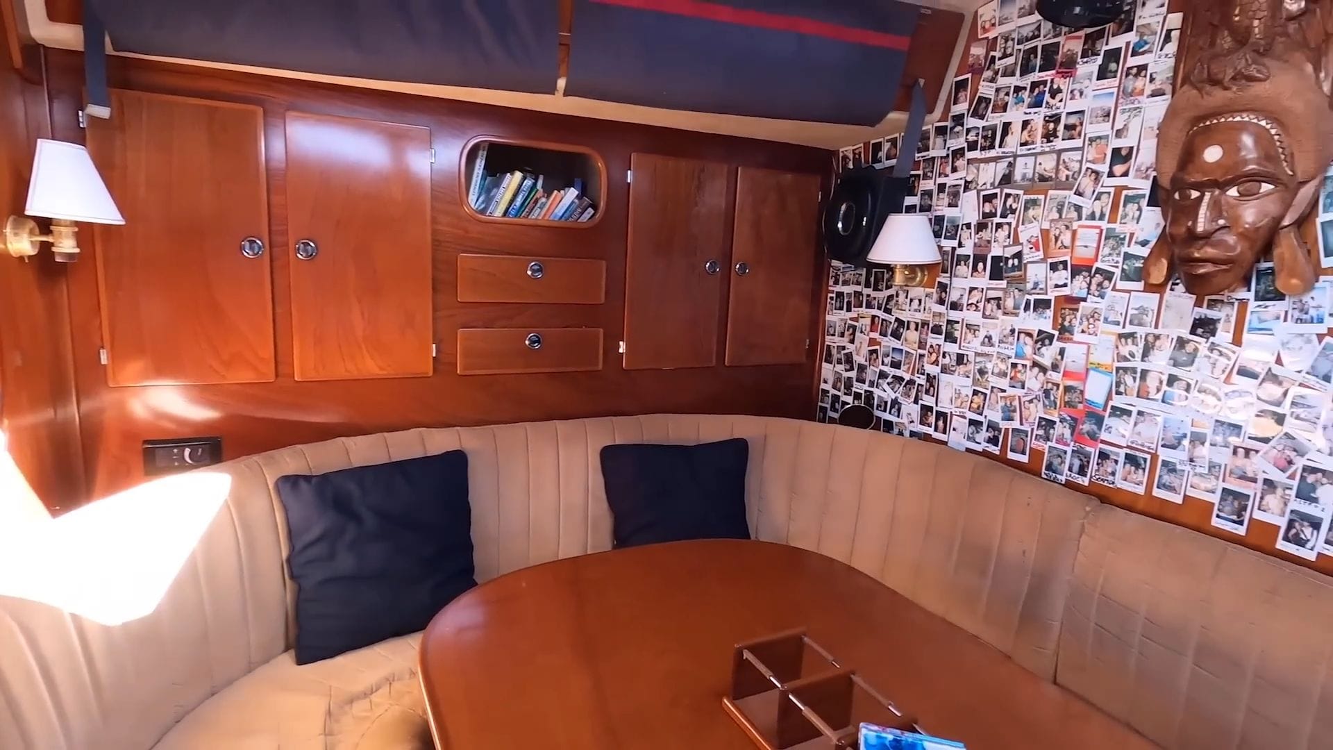 Storage throughout the boat is maximized brilliantly, with their entire wardrobe fitting efficiently into compact closets and additional seasonal items stored beneath the bed. A crucial safety feature here is the watertight bulkhead door – if the stern takes on water, they can seal this entire section and the boat will still float.