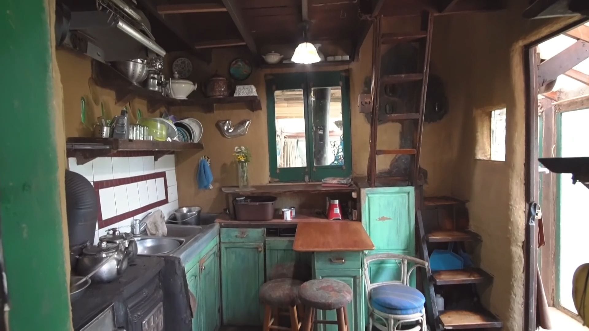 Let’s step inside this incredible 10 by 10 foot original structure that once housed the entire family in just a living room, kitchen, and sleeping loft above.