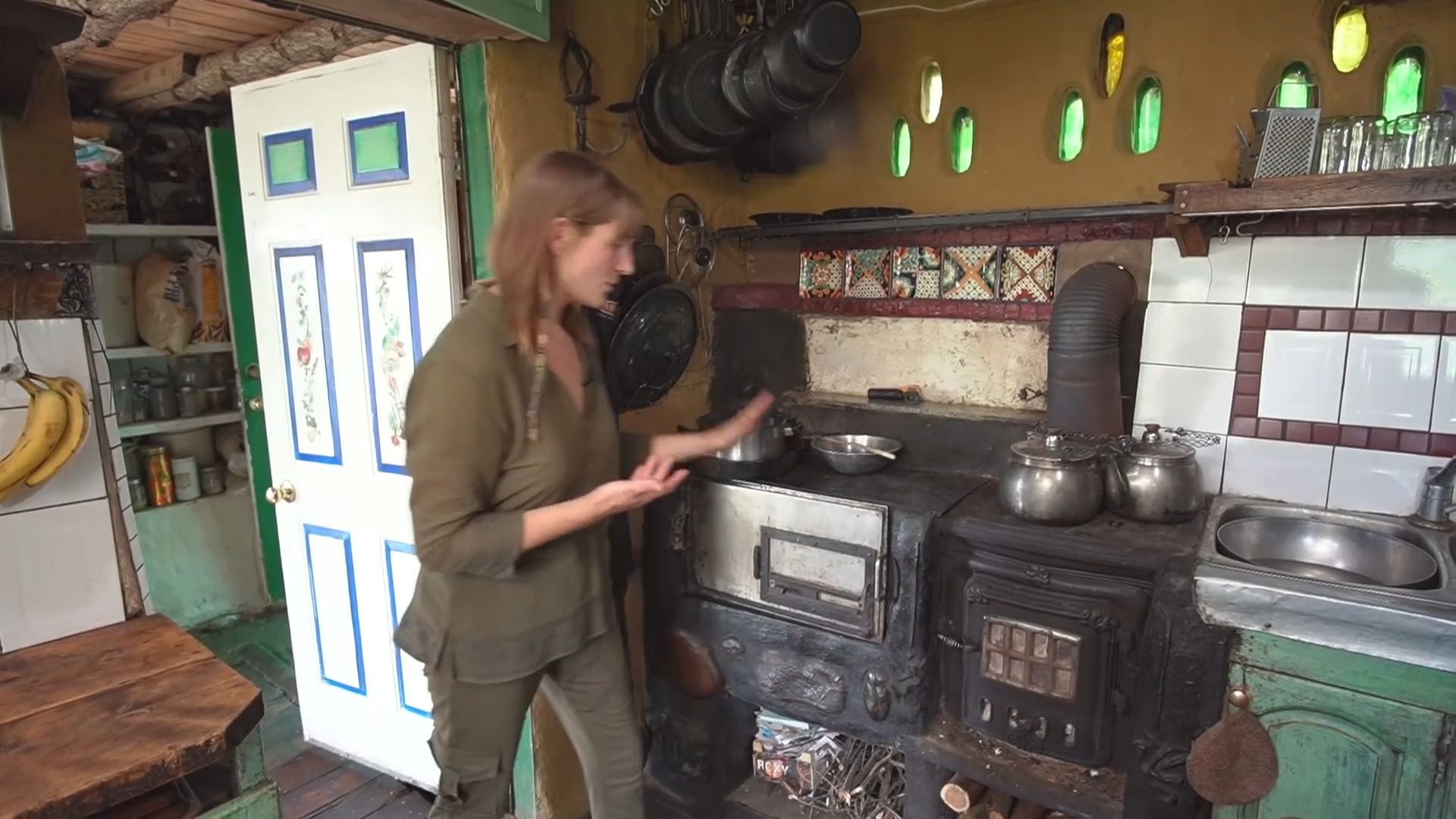 The original kitchen serves as the heart of daily life, centered around their main wood stove that handles all cooking except during the hottest summer weeks.