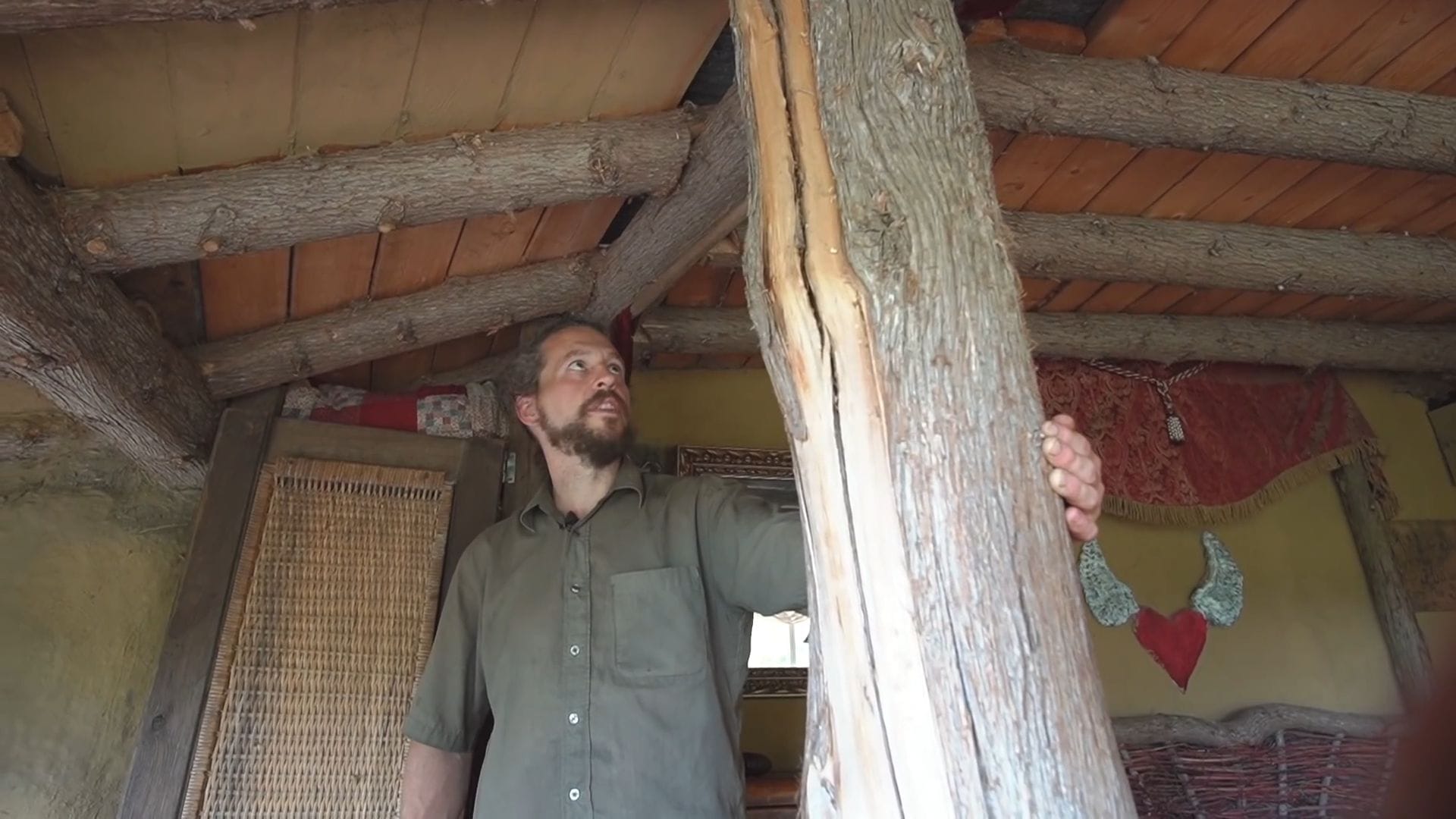 The timber frame construction throughout uses chainsaw tongue and groove techniques, with carefully cut notches ensuring each beam fits perfectly and securely.