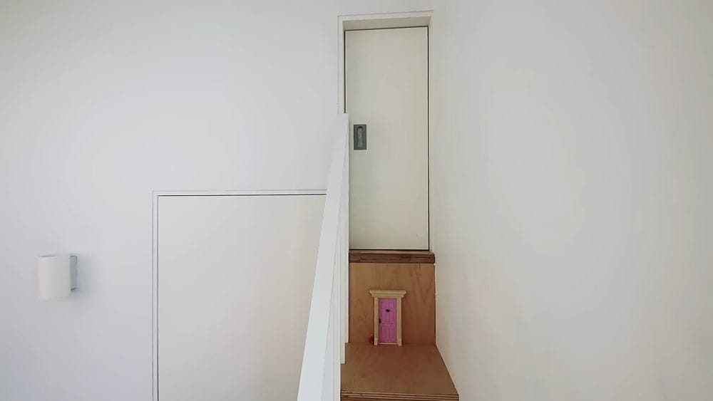 The children’s spaces showcase the most creative solutions in the entire home, starting with a unique entry system that makes bedtime an adventure. Instead of a simple doorway, the girls climb specially-built stairs to reach their own secret entrance, complete with a charming fairy door that adds whimsy to the practical design.