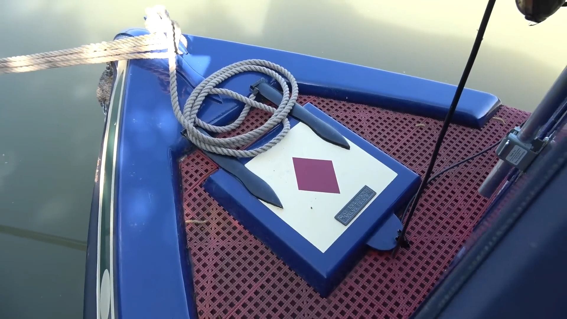 These comfortable deck seats cleverly double as storage units, hiding paint supplies, brushes, and other essentials beneath their cushioned surfaces. A standard garden hose coiled nearby connects to the boat’s 100-gallon water tank, providing fresh water for about ten days of solo living.