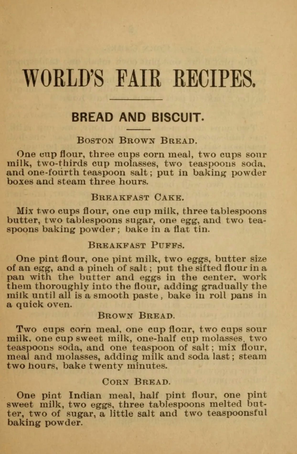 What makes this cookbook so special isn’t just its gorgeous vintage cover – it’s packed with over 600 practical, economical recipes that give us a fascinating peek into how people cooked and ate during America’s most spectacular World’s Fair.