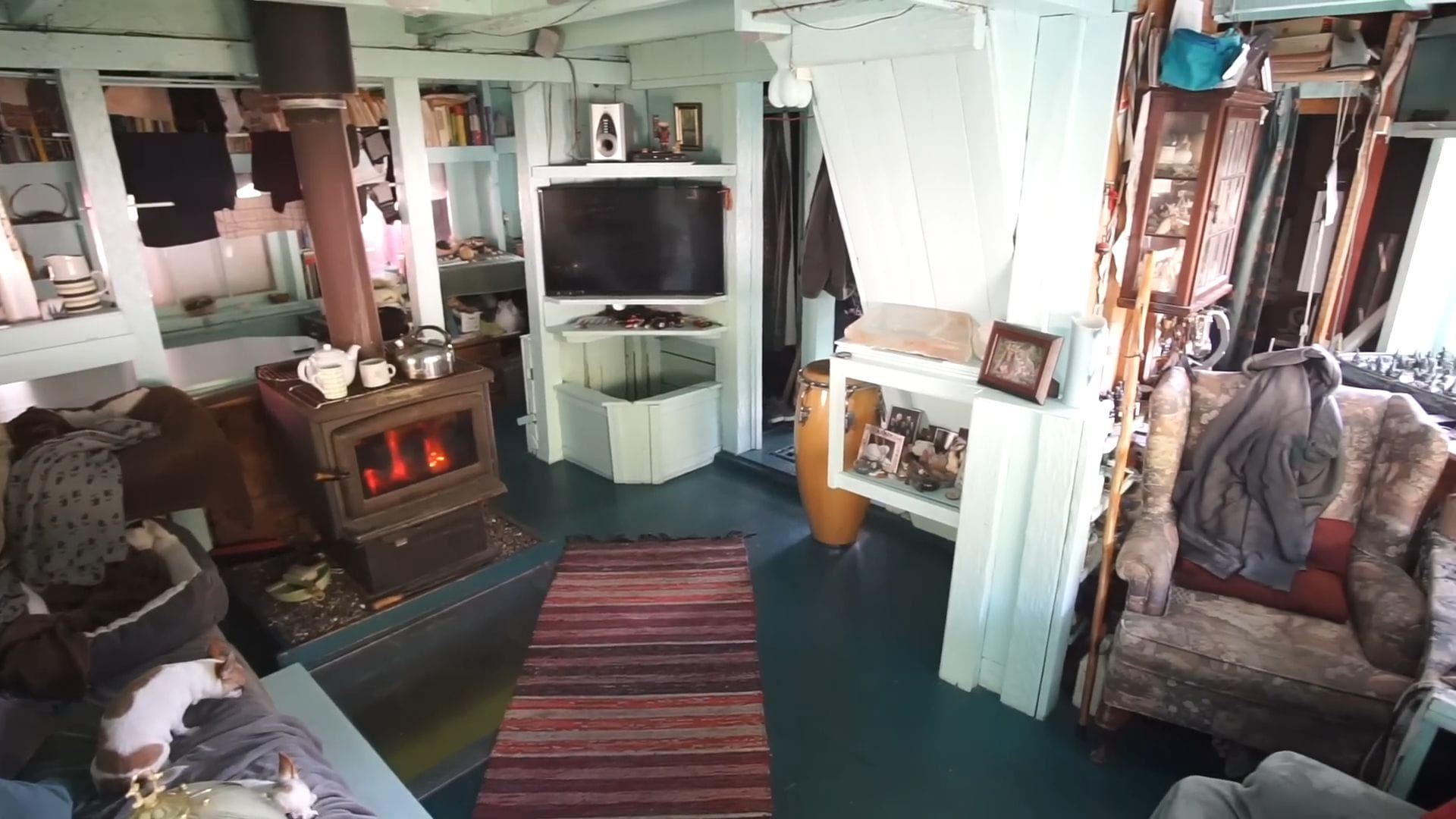 Step aboard what started as a modest half-sized house, built with the urgent priority of having a roof over their heads. Because one of the owners is a dancer, the very next addition was a dedicated dance floor – an essential space for movement and expression on the water.