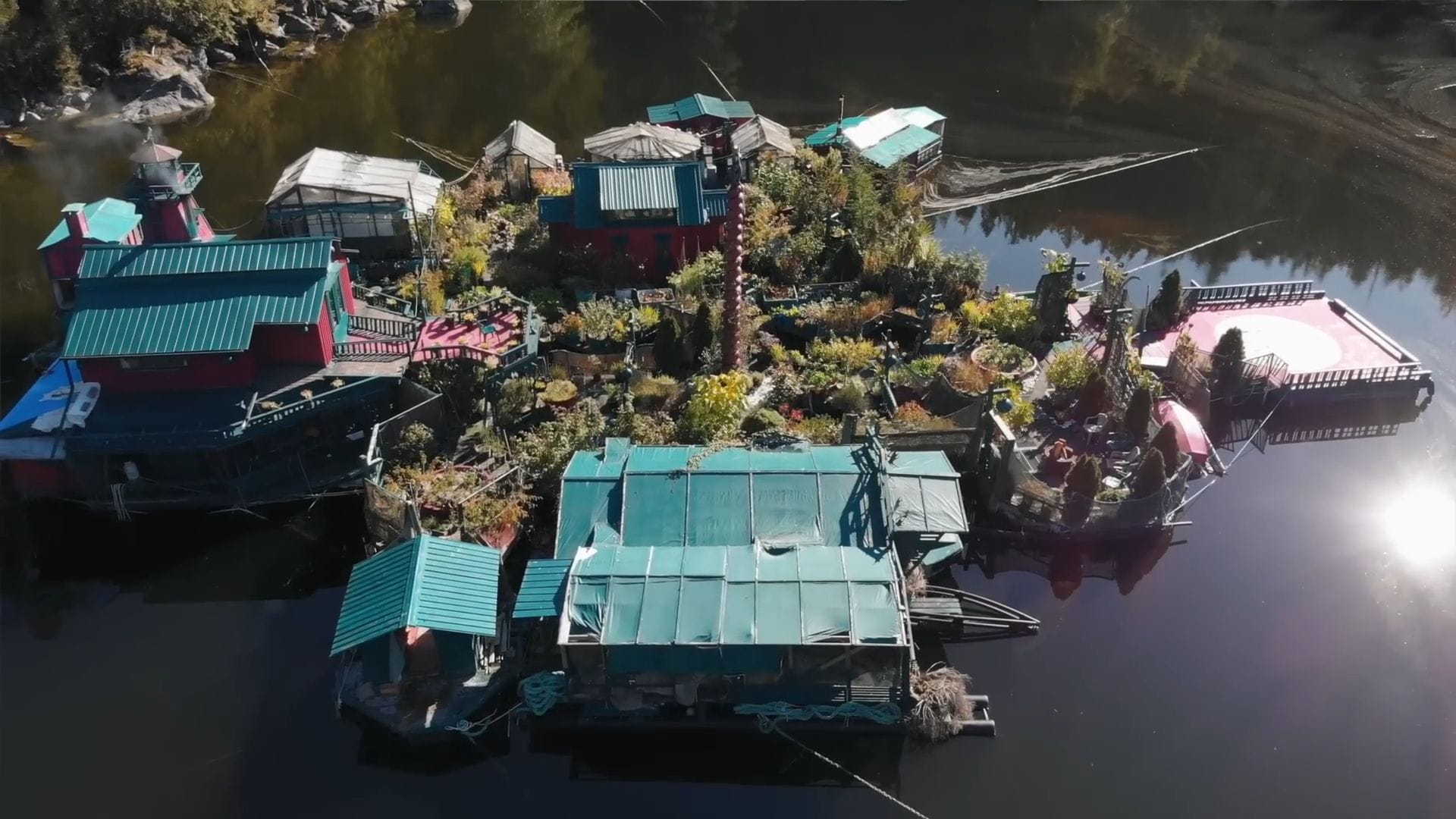 Four impressive greenhouses dot the floating landscape, each serving a crucial purpose in this water-based growing system. The unique challenge of gardening on water means dealing with coolness rising from below and fierce winds from above, making these protective structures absolutely essential.