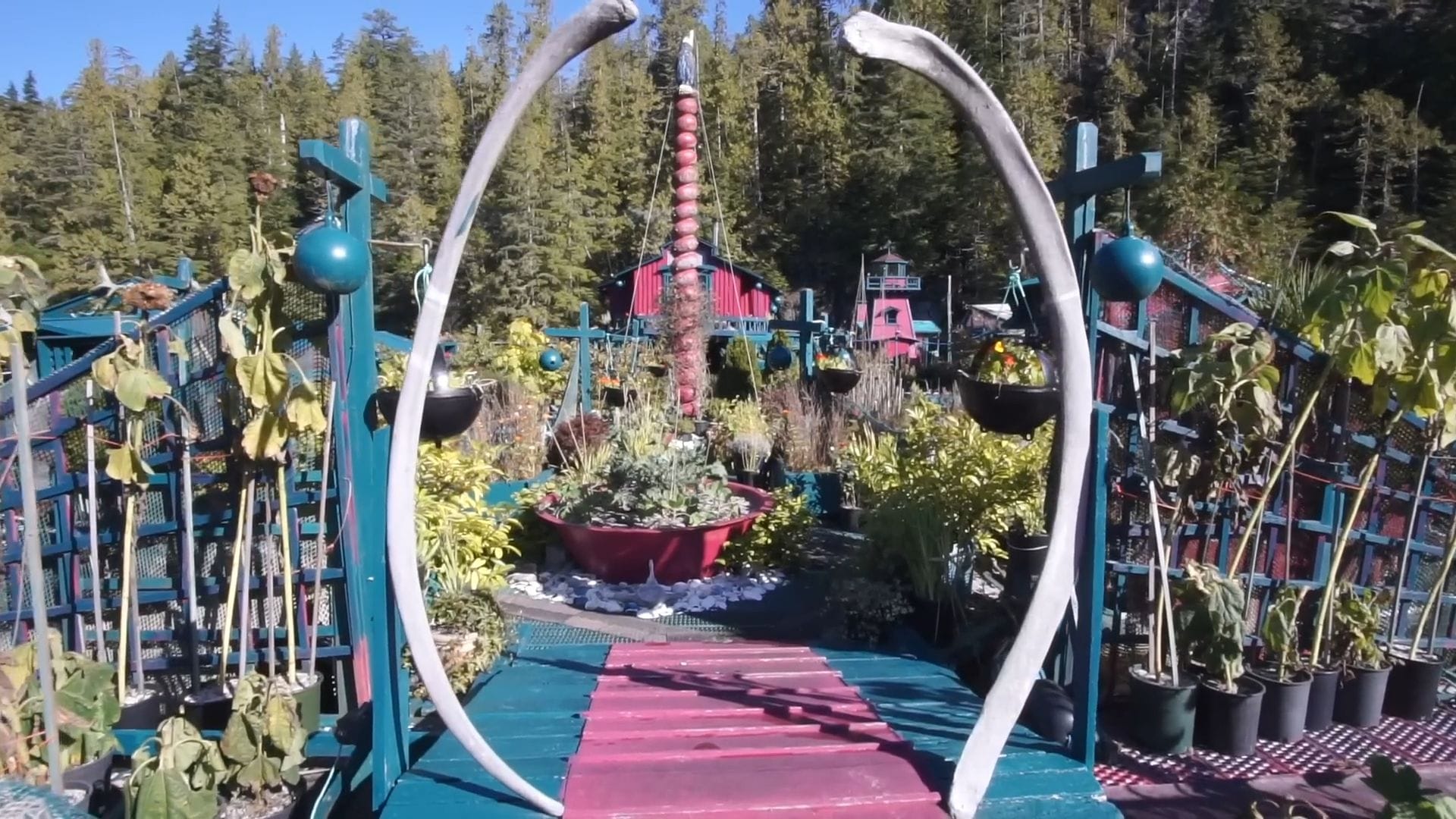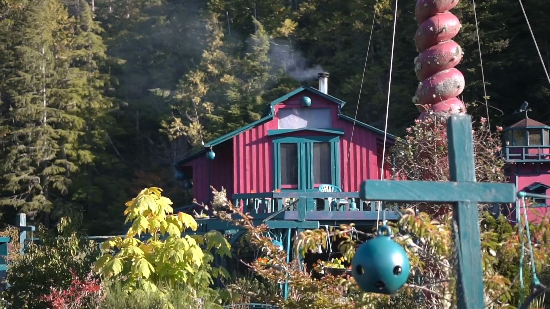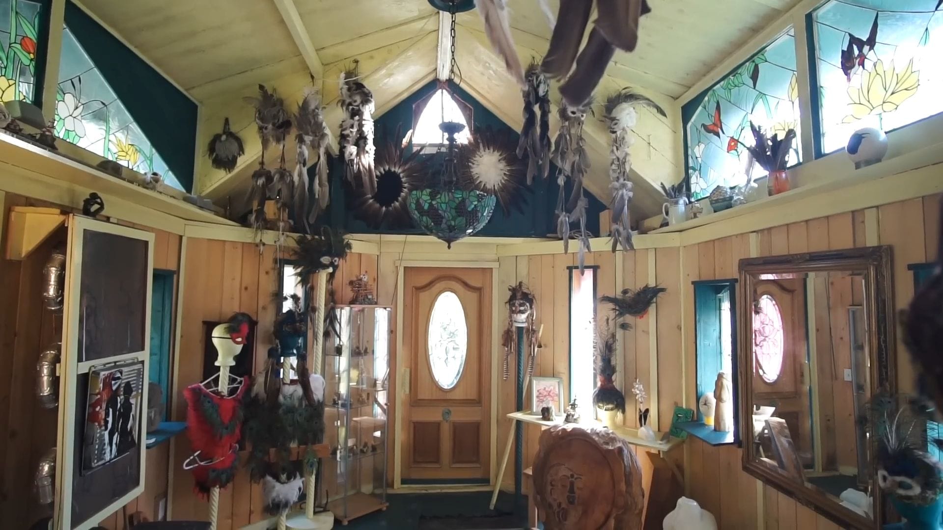 Like birds that build nests without permission, the owners of this remarkable homestead used whatever materials they could find around them, with sixty percent of everything here acquired through trade and barter using their skills as artists and carvers.