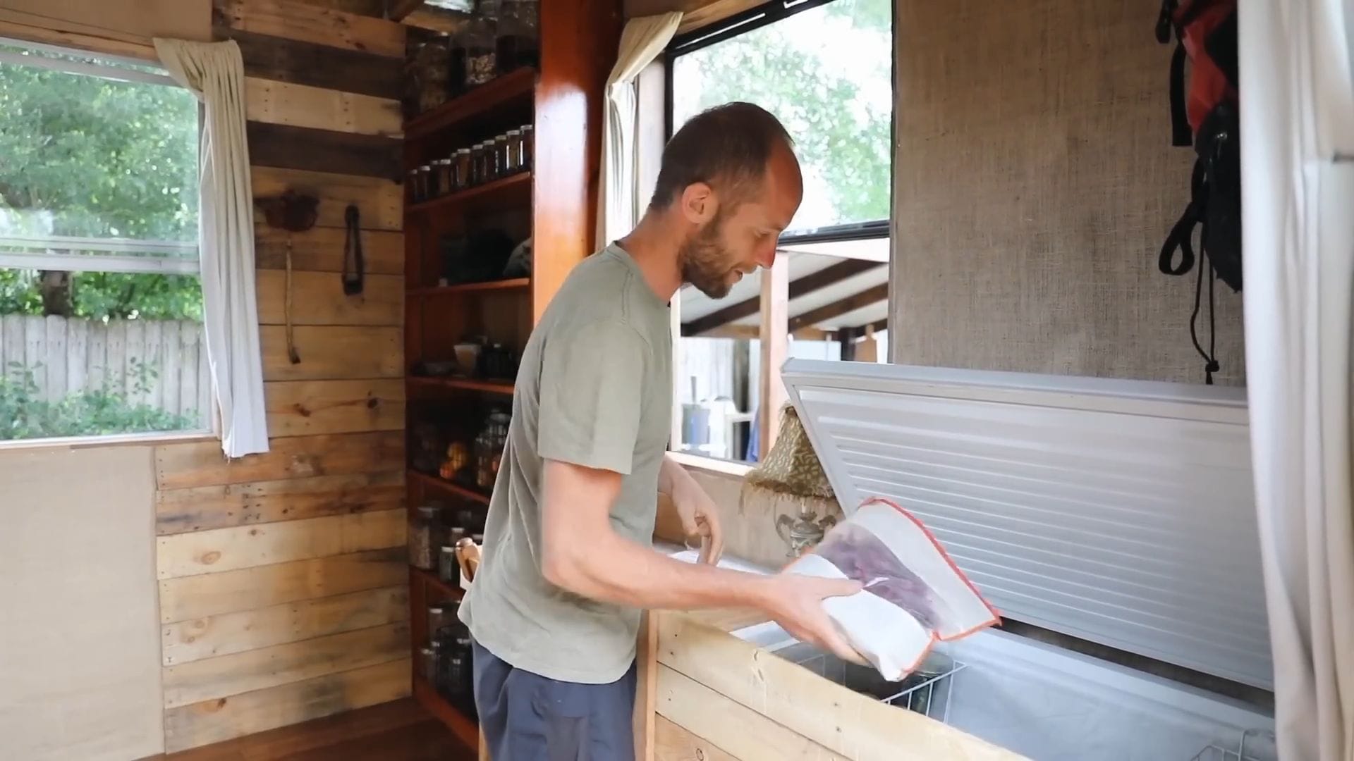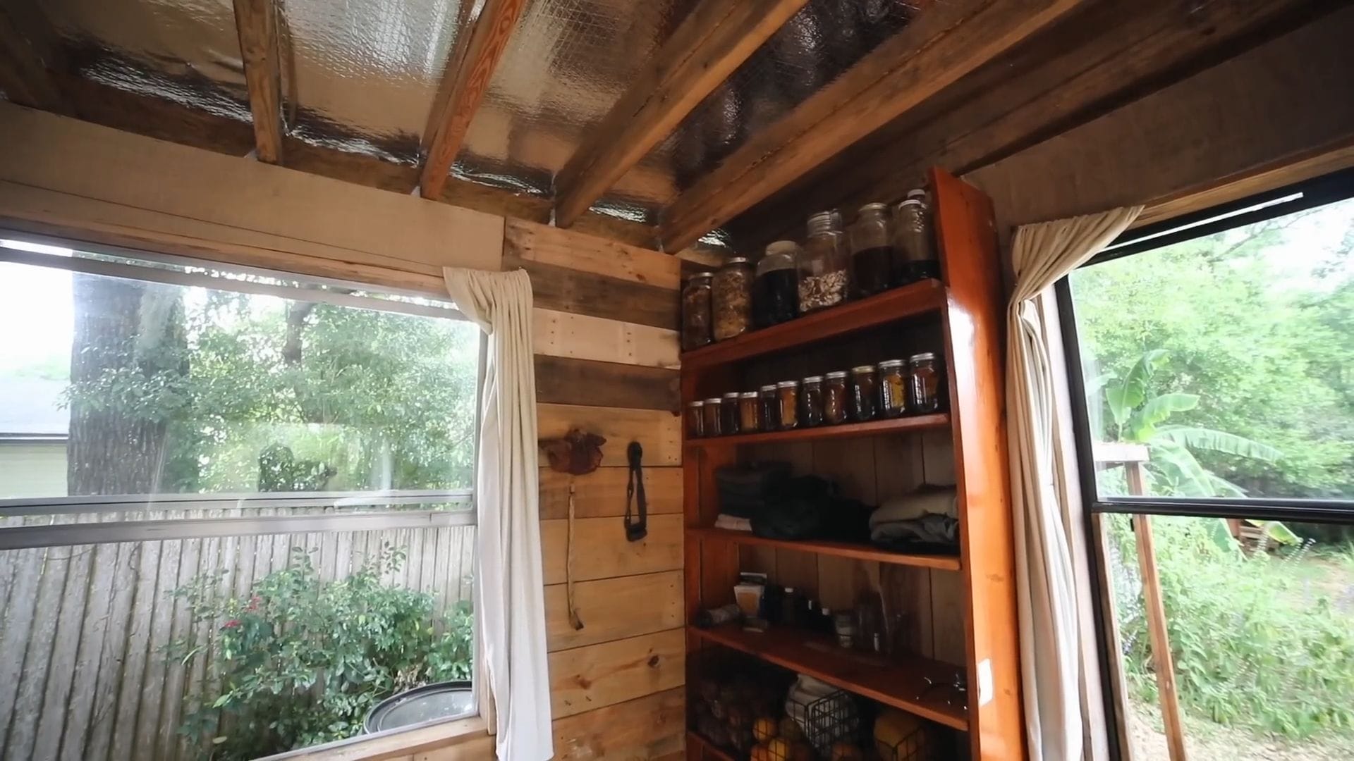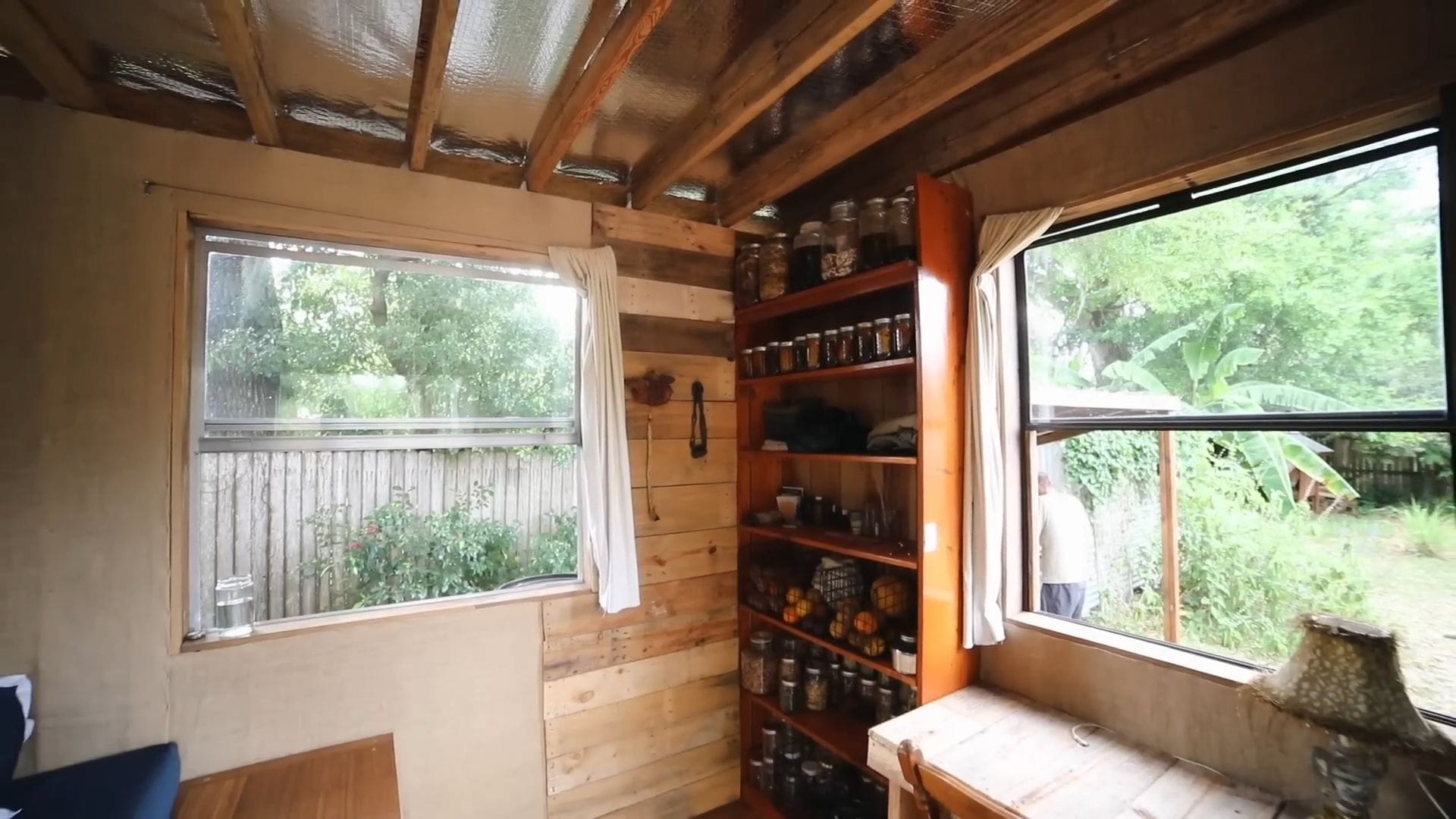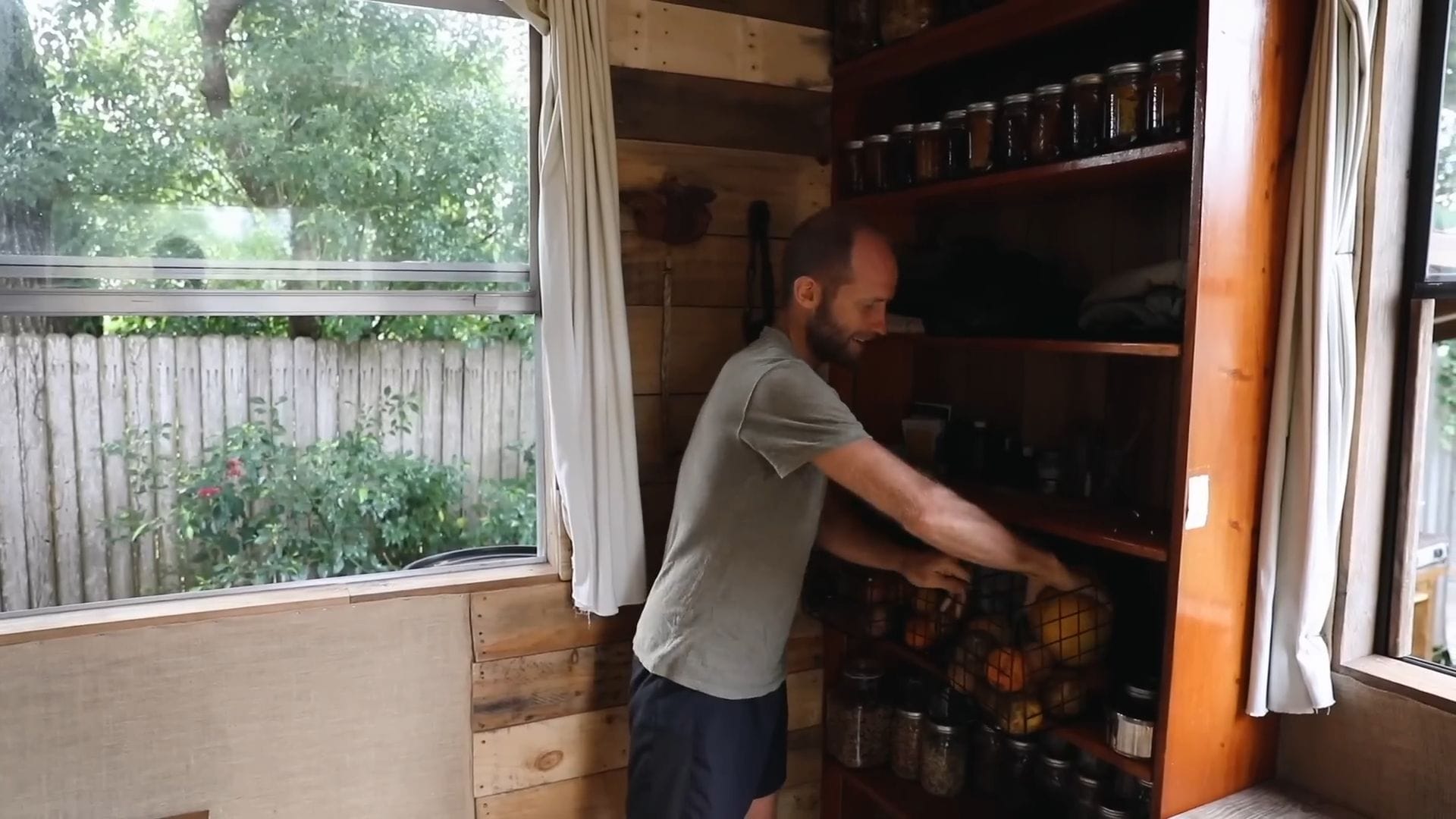 The real star of this tiny house isn’t furniture – it’s food storage, supporting Rob’s incredible project of growing and foraging 100% of his food for an entire year.