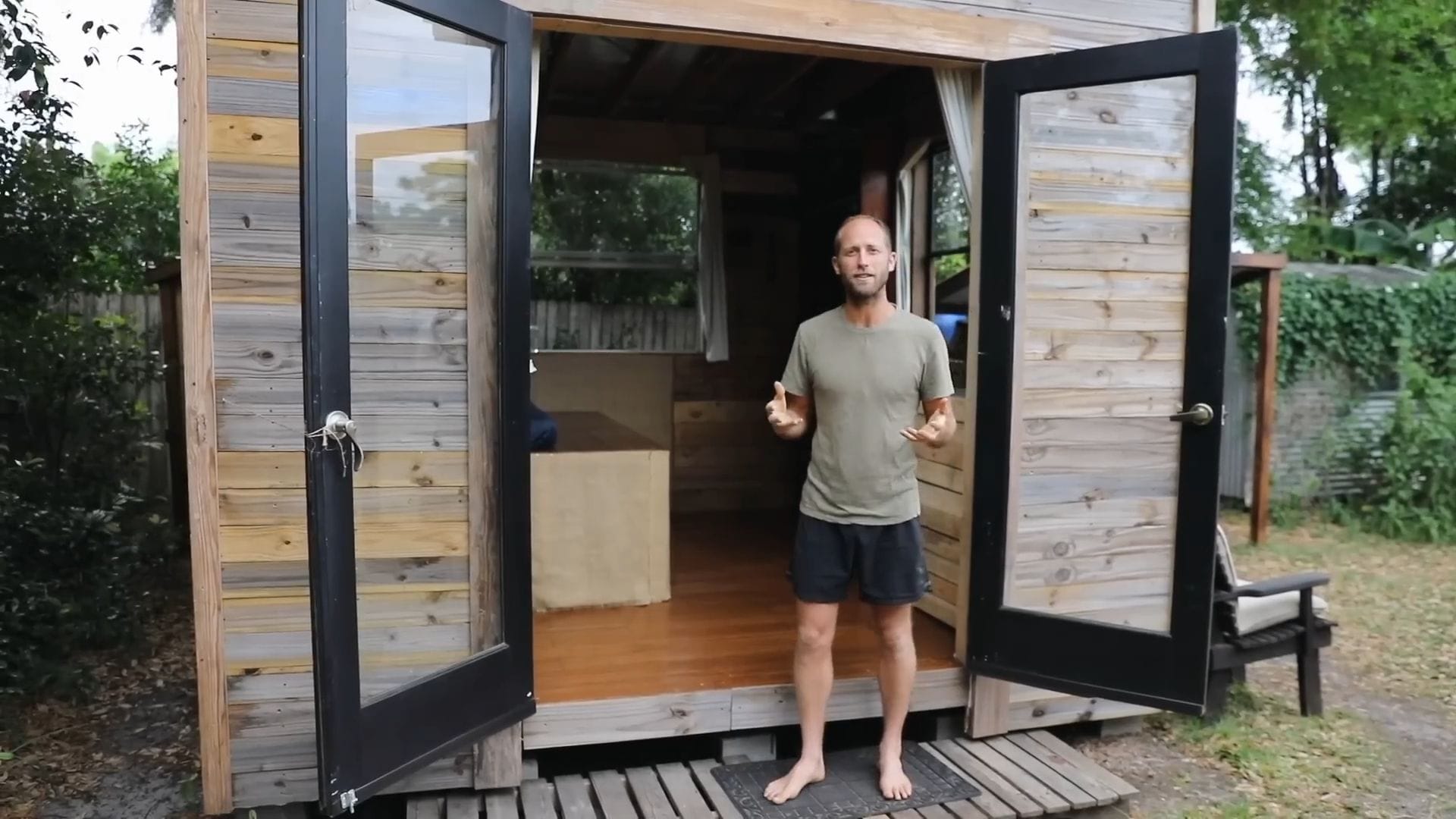 Rob spends most of his time outside the tiny house, whether in the community, the yard, or his outdoor kitchen where the real magic happens.