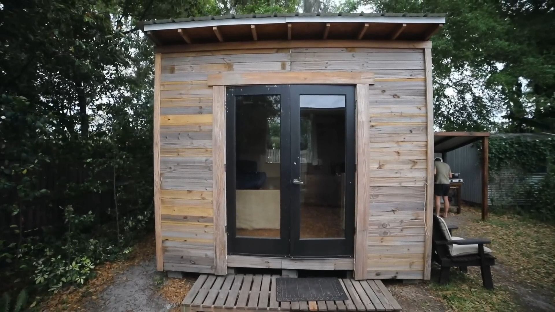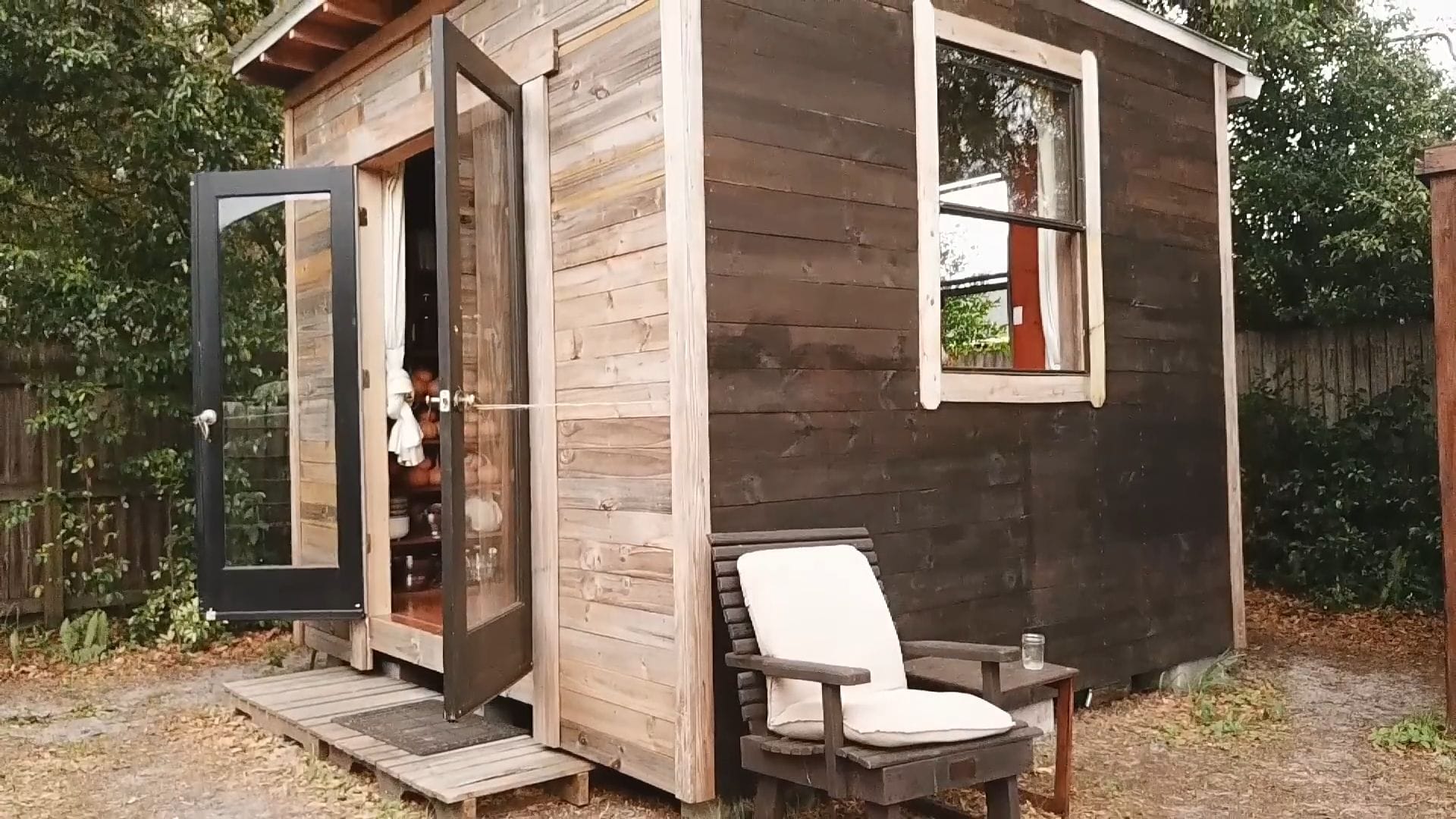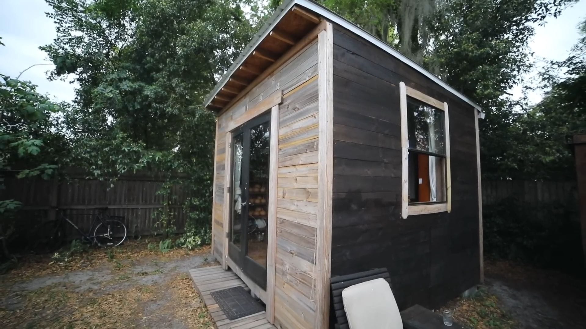 The shed-like appearance was a strategic choice, since tiny houses aren’t legal in many areas and this one isn’t built on wheels.