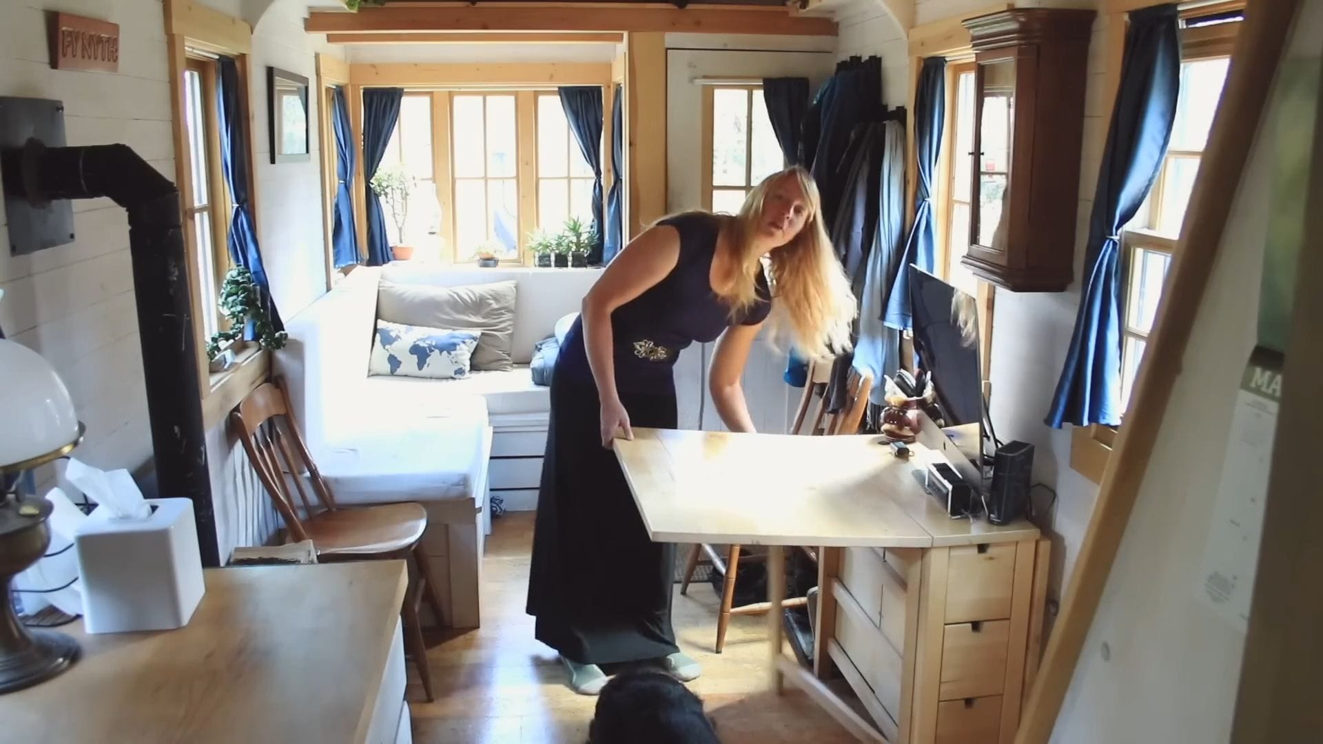 She doesn’t own the land where her house is parked, but instead trades labor with the ranch owners for her parking spot.