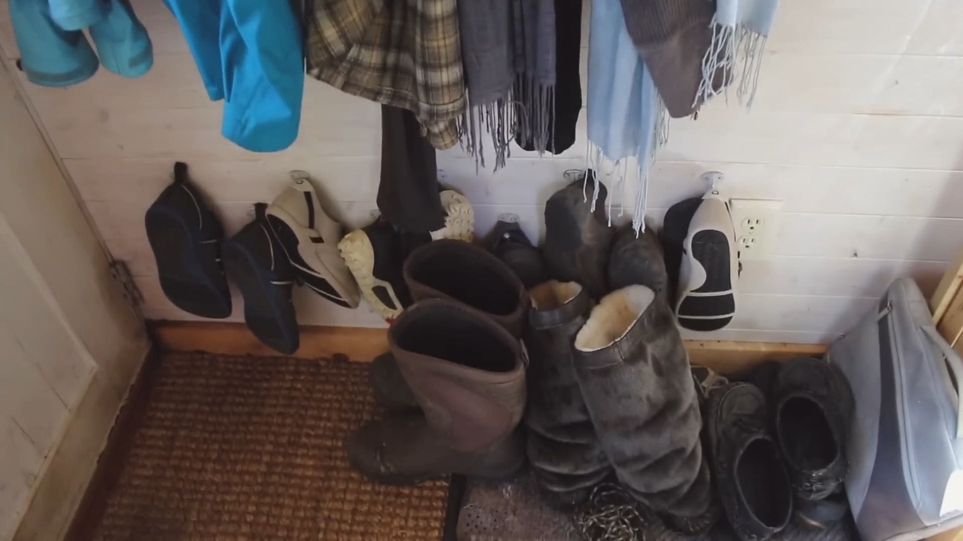 Multiple layers of clothing, boots, scarves, and outerwear hang openly here where everything can easily air dry after exposure to snow or rain.