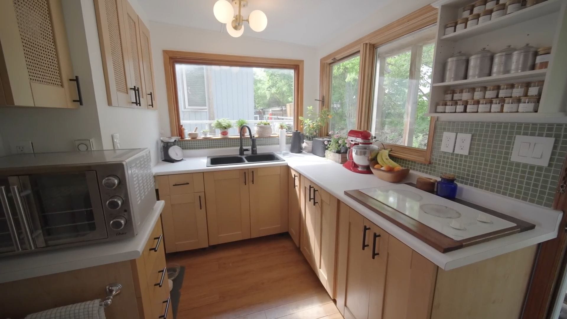 The distinction between float homes and houseboats lies in their flotation systems – while float homes use floating concrete bases and can support larger, two-story structures, houseboats on pontoons like Kate’s offer a more affordable option at about one-third the price. Step inside to discover the heart of this floating home – a compact but incredibly functional kitchen that proves size doesn’t limit culinary creativity. Despite initial concerns about the small space and lack of a traditional stove, this kitchen has exceeded all expectations for someone who loves cooking and considers themselves a foodie.