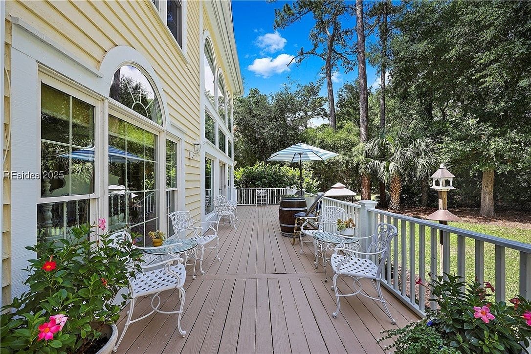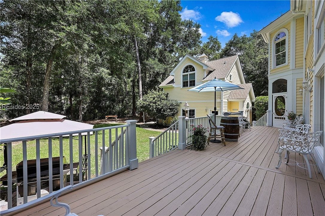 Located at 4 Saint Johns Pl in Hilton Head Island, this exquisite single-family residence is listed for $2,350,000. Built in 2002, the three-story home spans 5,654 sq ft and is situated on a sprawling 28,915-acre lot in the Shipyard F subdivision. This one-of-a-kind property features 6 bedrooms and 6 bathrooms, including 4 en-suite bedrooms and a 1-bedroom suite above the 2-car garage. The chef’s kitchen is equipped with a large granite island and custom gas range, perfect for culinary enthusiasts. Interior features include a wet bar, elevator, fireplace, jetted tub, and smooth ceilings.