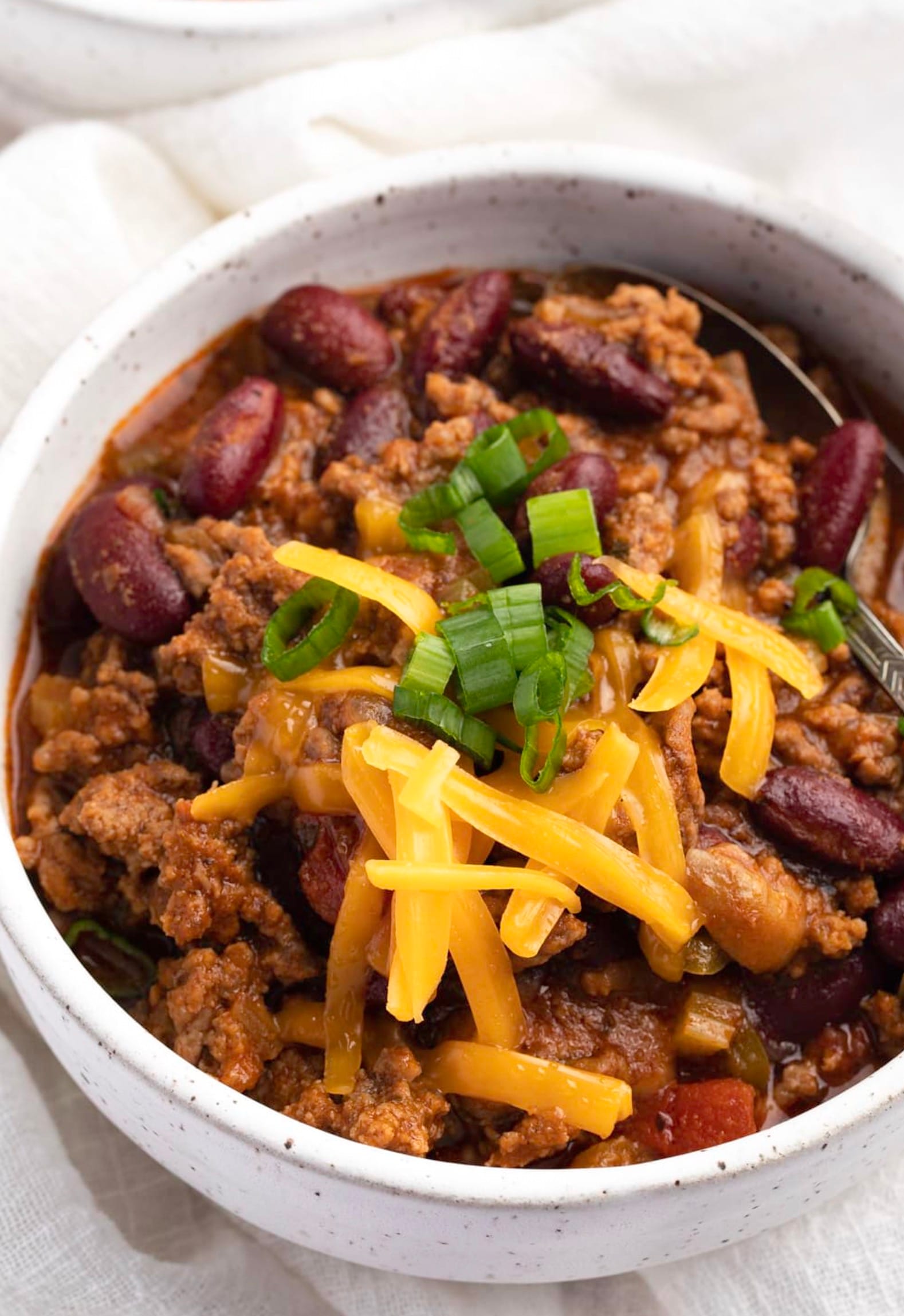 Use 80/20 ground beef for the best flavor and texture in your chili. It has enough fat to keep the meat juicy without being greasy.