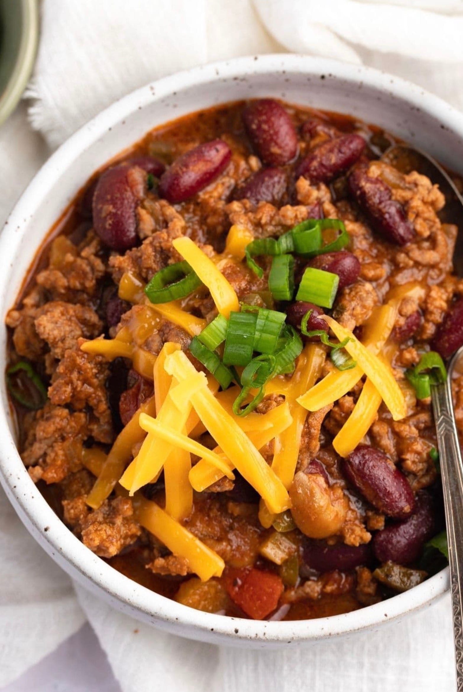 Try topping your chili with shredded cheese, sour cream, or green onions for extra flavor. Serve it with cornbread or crackers on the side.