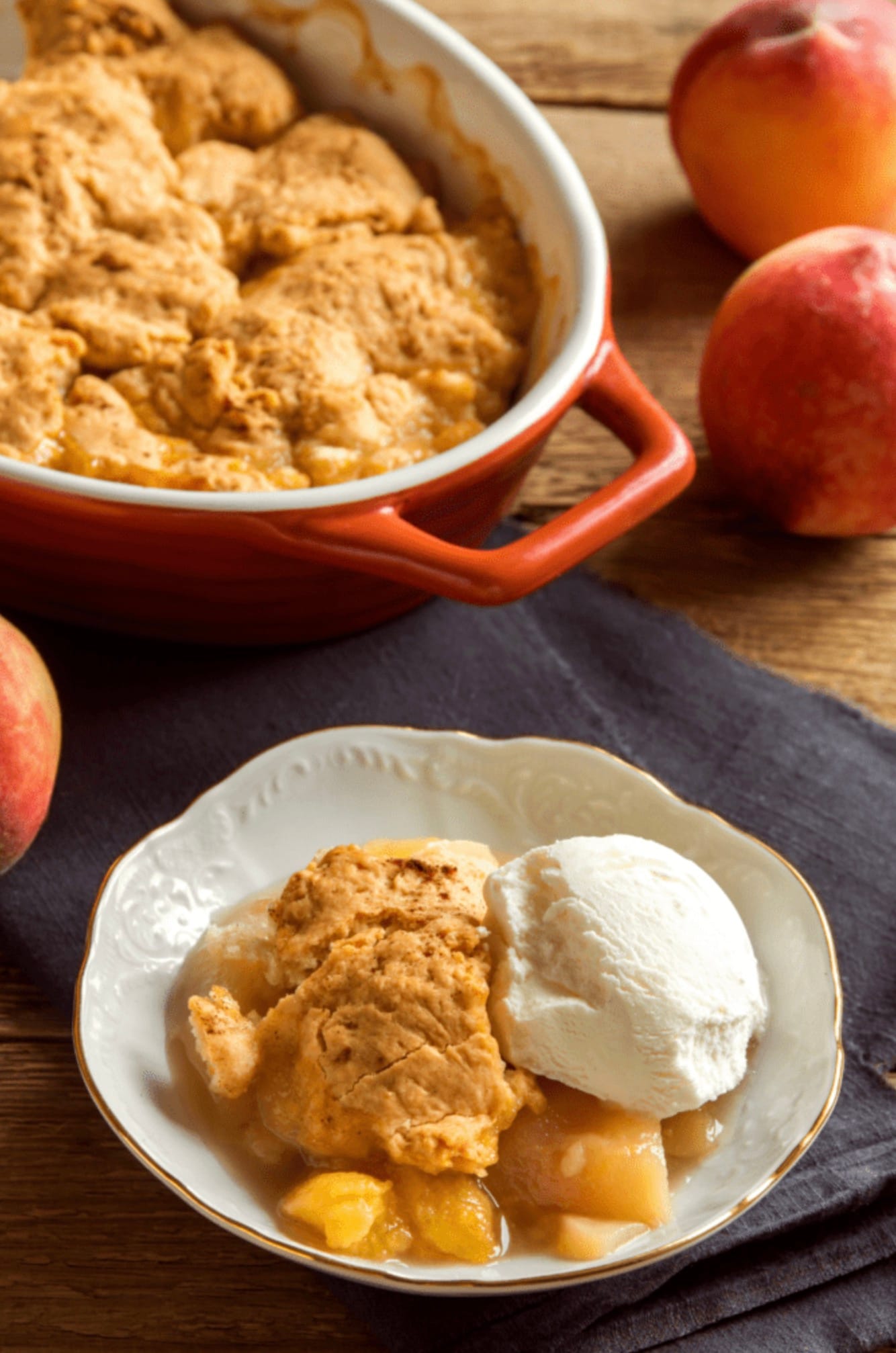 You can freeze peach cobbler too! Wrap it tightly in plastic wrap and aluminum foil. It will keep in the freezer for up to 3 months. Thaw overnight in the fridge before reheating.