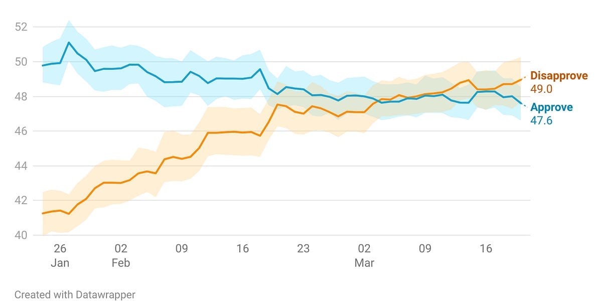 Trump approval rating crashes below 50 percent for first time in second term