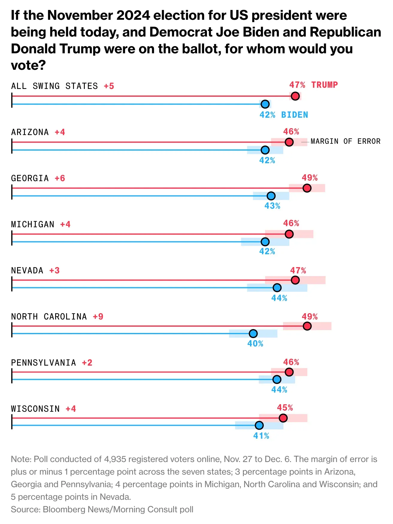The six states getting the most attention are Arizona, Georgia, Michigan, Nevada, Pennsylvania, and Wisconsin.