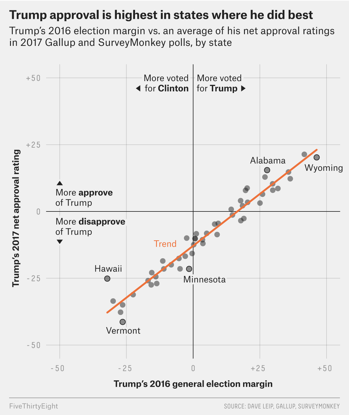 Georgia, won by Trump with 50.7%, shows 45% approve and 51% disapprove.