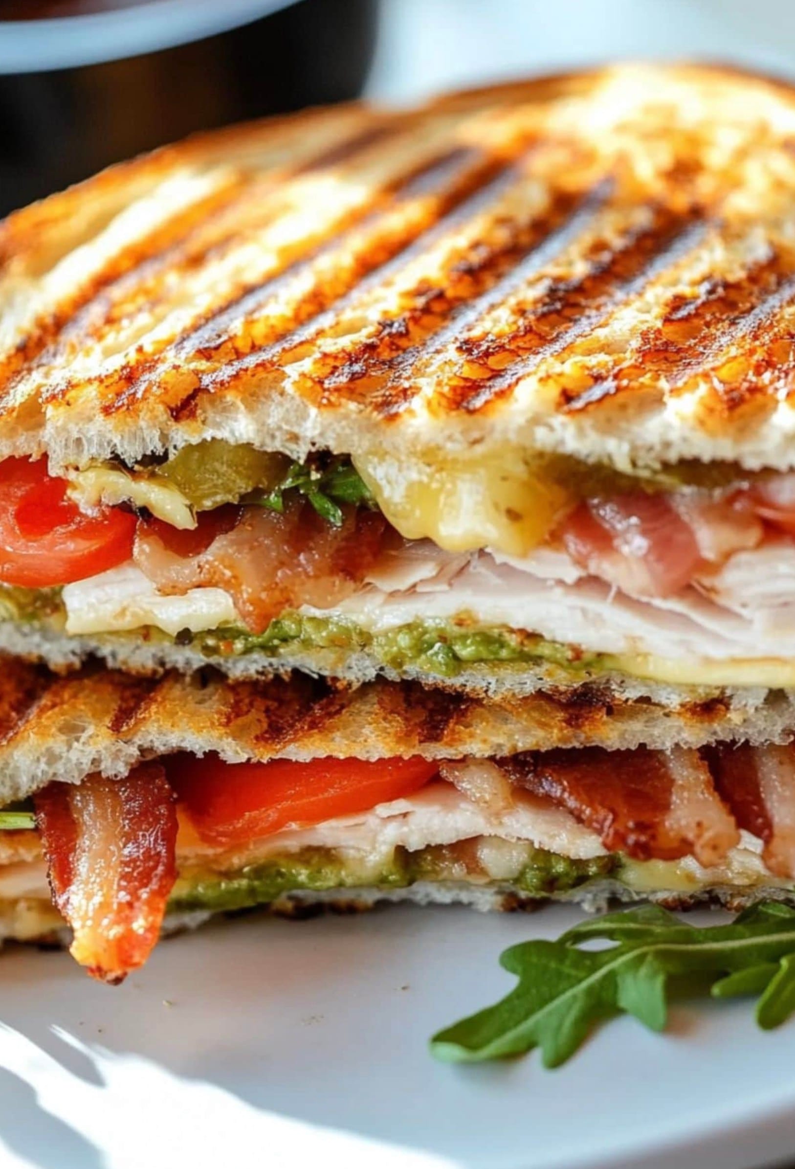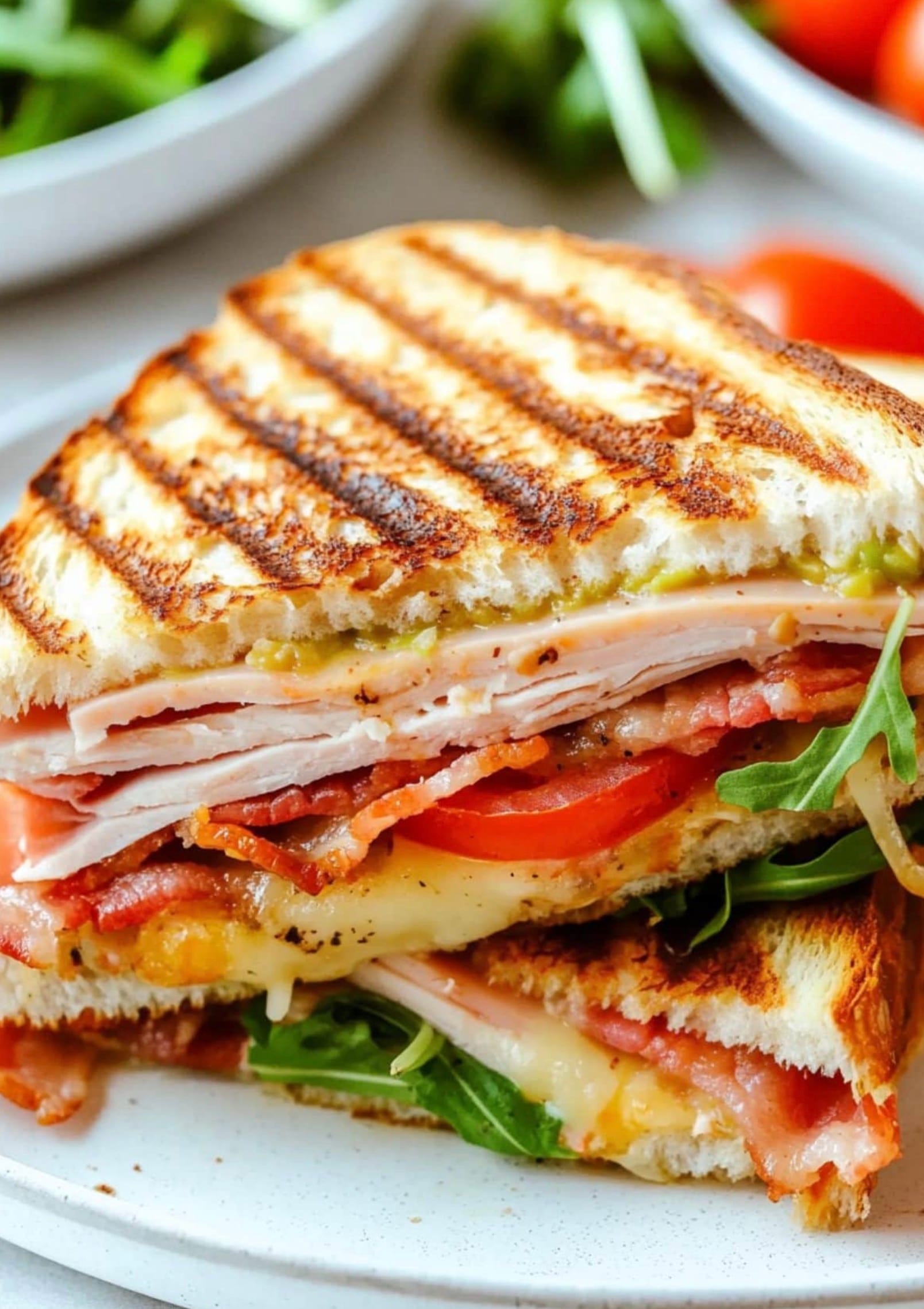 Turkey and bacon paninis are a tasty lunch option you can make at home. These sandwiches have crispy bread, melted cheese, and savory fillings. You can make four servings in just 30 minutes, with each sandwich packing 820 calories of delicious flavor.