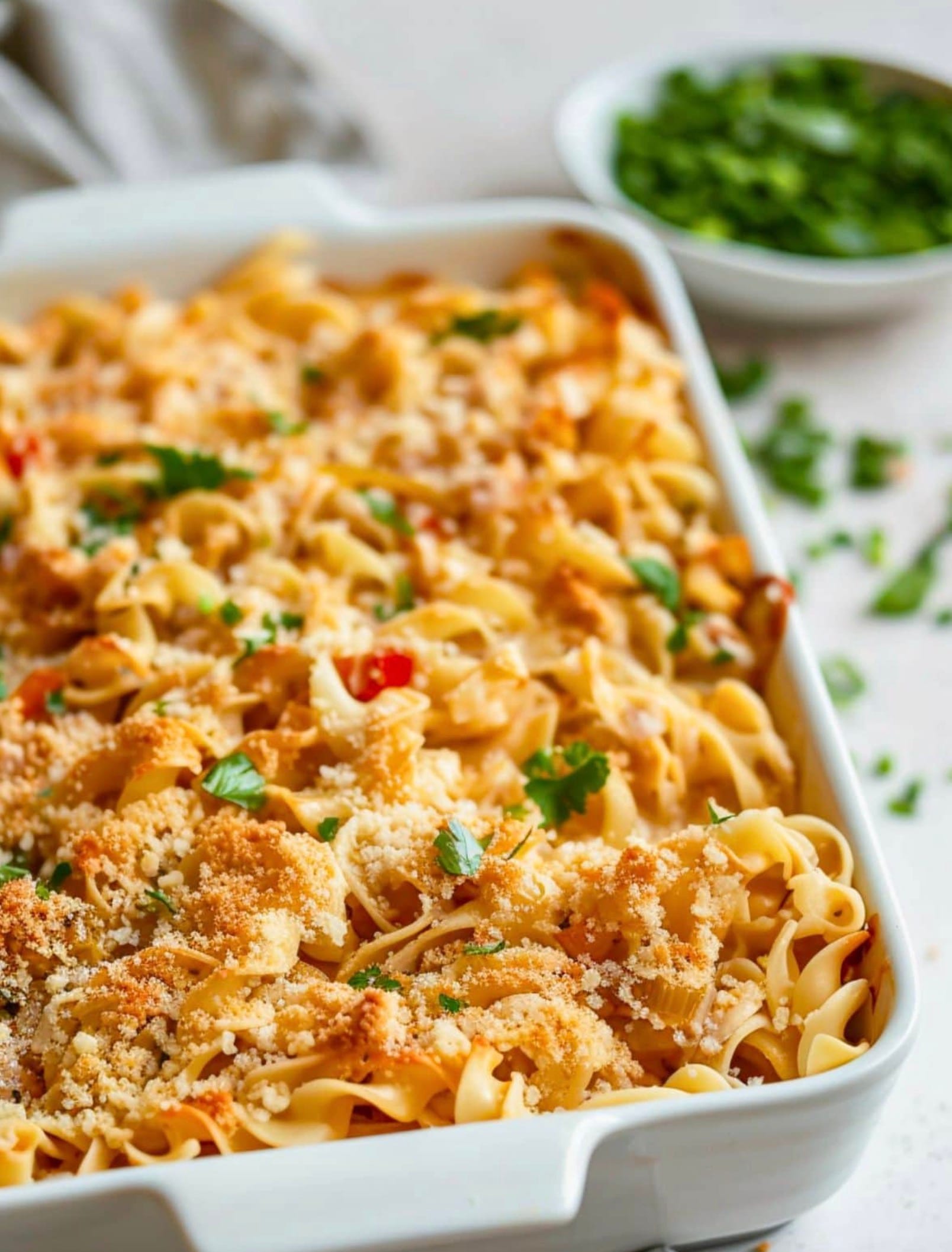 Preheat your oven to 375°F and grease a 9×13-inch baking dish. Cook the egg noodles in salted water until they’re almost done, about 1 minute less than the package says. Drain them well.