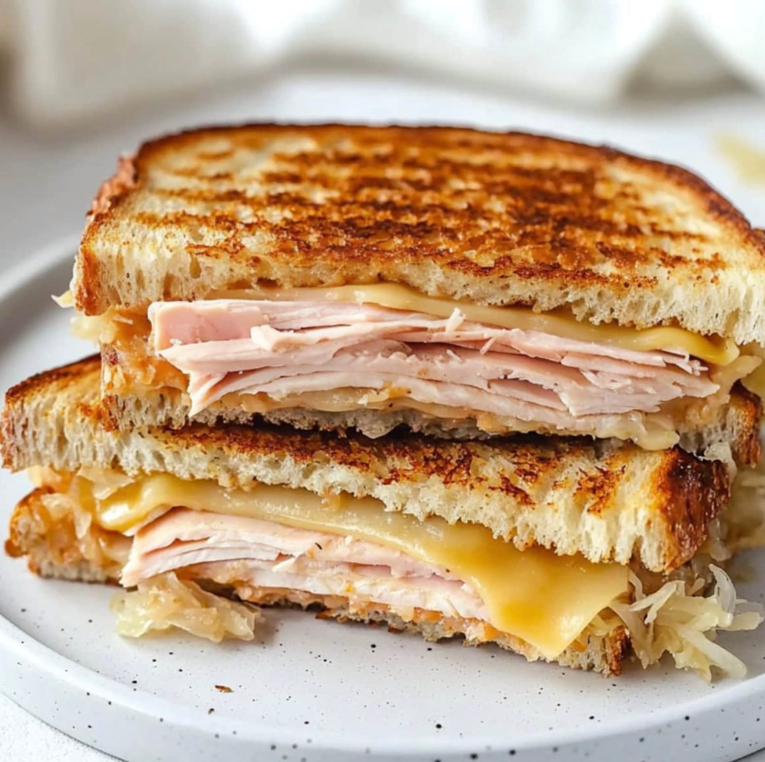 To make the best turkey Reuben sandwich, drain the sauerkraut well. This keeps your bread from getting soggy. You can press it in a strainer or pat it dry with paper towels.