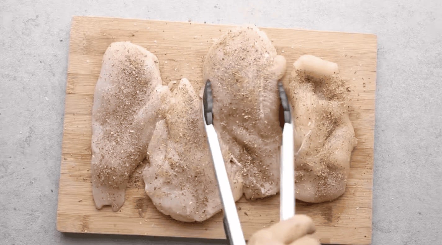 Season the Chicken: Season each side of 4 large pounded chicken breasts with 1 teaspoon of Italian Seasoning and salt and pepper to taste.