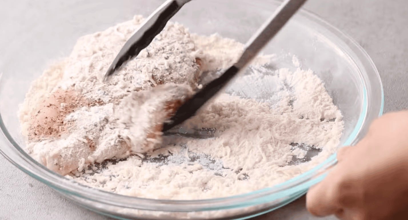 Dredge the Chicken: Combine 4 tablespoons of all-purpose flour and 3 tablespoons of grated Parmesan cheese in a shallow bowl. Dredge each chicken breast in the flour mixture, coating both sides.