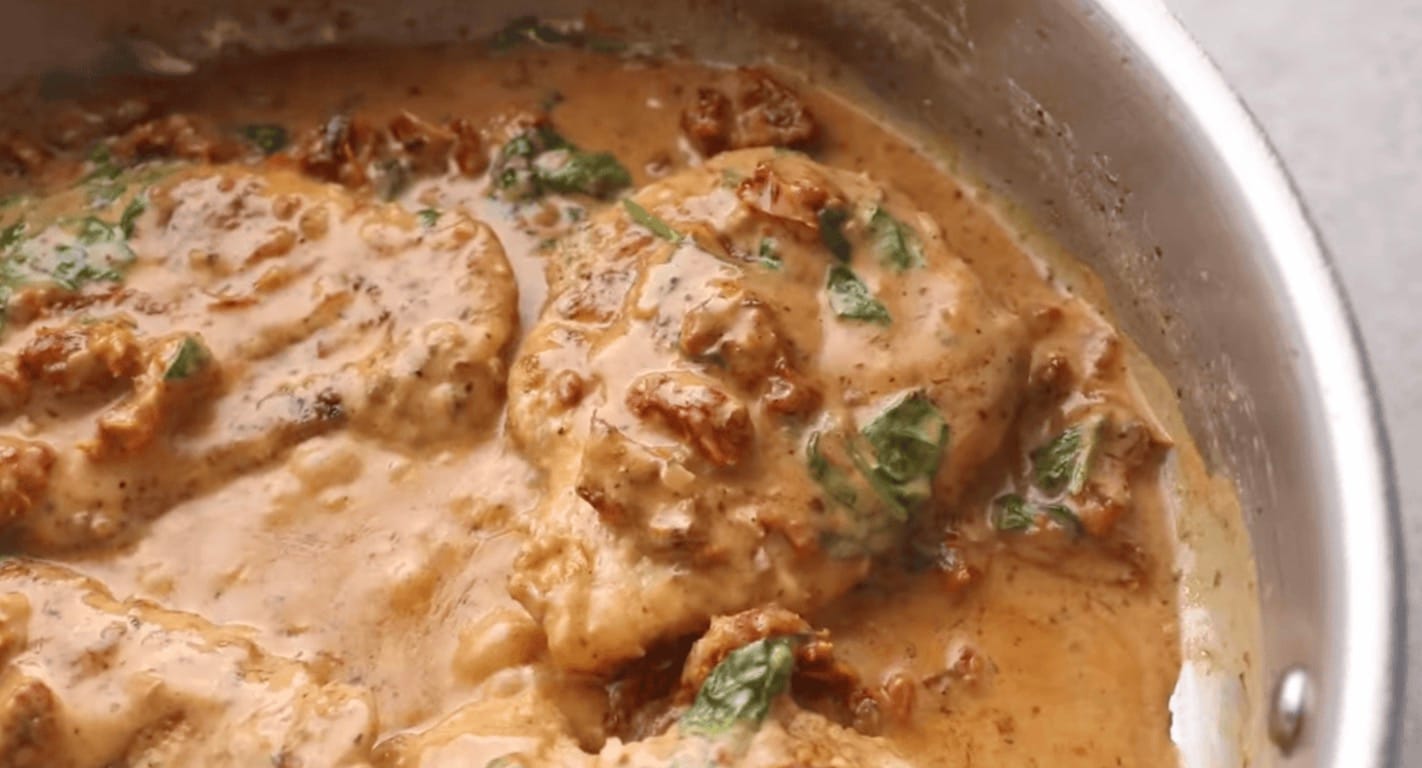 For the best Tuscan chicken, pound your chicken breasts to an even thickness. This helps them cook evenly and stay juicy.