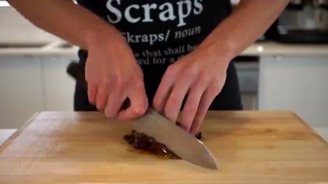 Get every last bit! Now, roughly chop 100 grams of sun-dried tomatoes – unless they’re already shredded.