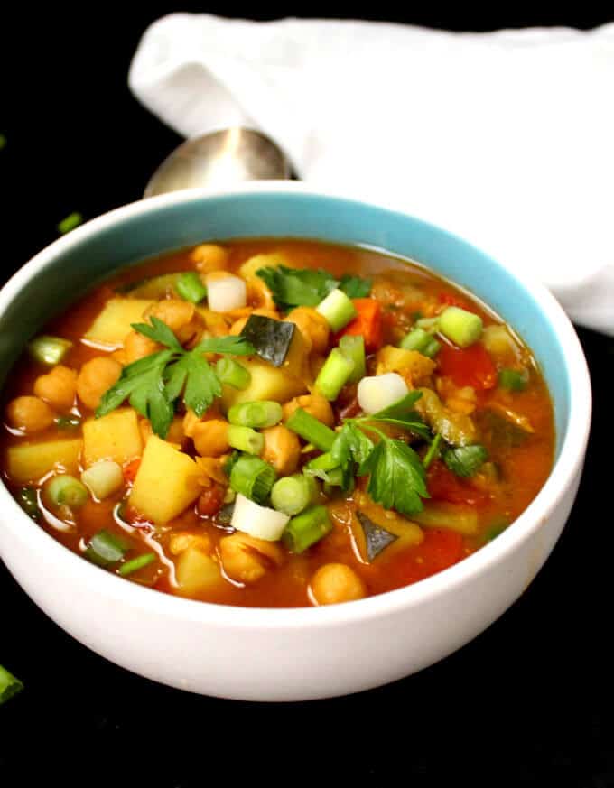 Finally, sprinkle some fresh parsley and chopped scallions on top. Your Moroccan Chickpea Stew is ready to serve! Enjoy it while it’s hot and steamy.