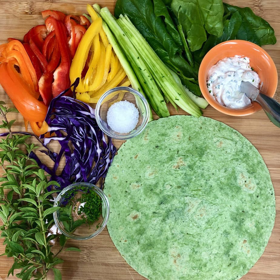 You can adjust the amounts based on how many wraps you want to make. Feel free to swap in other veggies you like or have on hand.