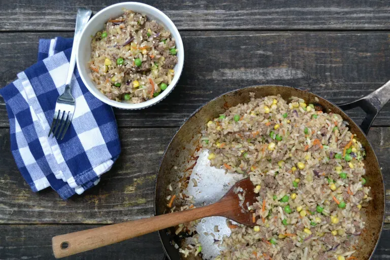 - Cook for about 2 minutes before adding cooked rice and stirring everything together until heated through again.