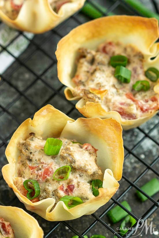 These crunchy cups are stuffed with a cheesy pork sausage filling (but you can use any kind of sausage you like).