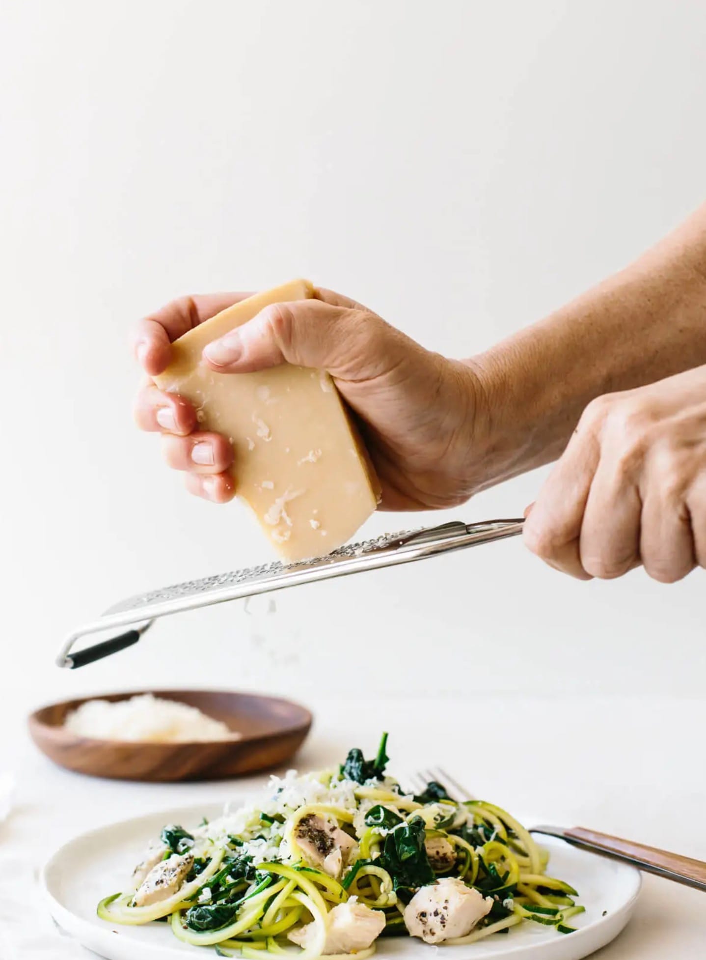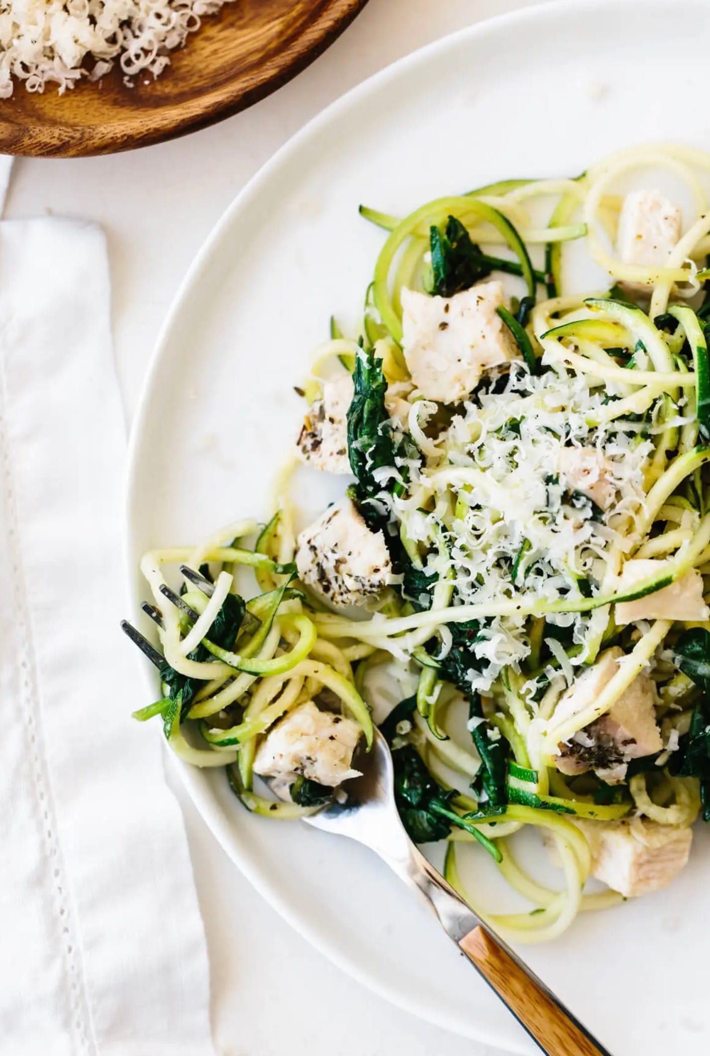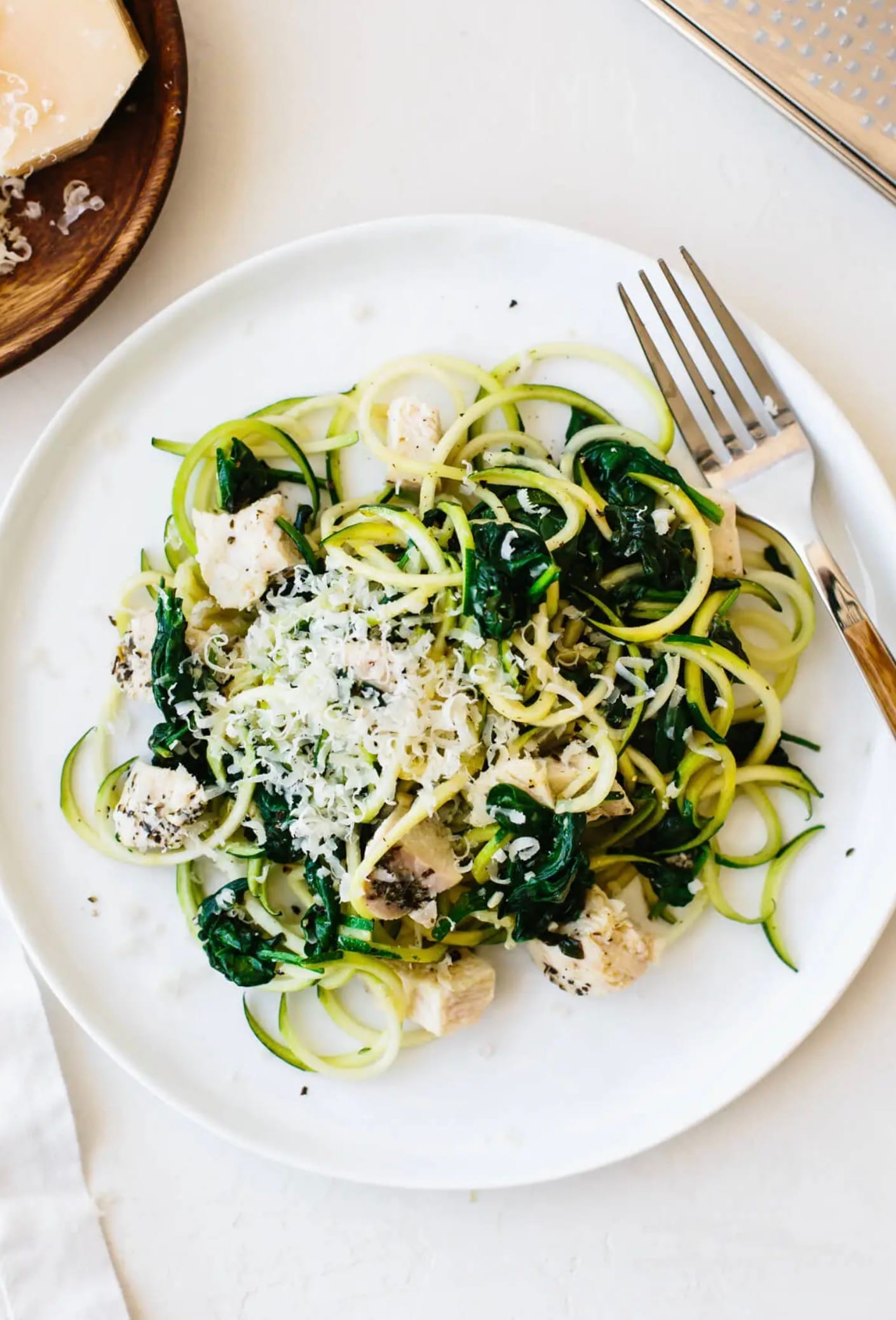 Zucchini Noodles with Chicken, Spinach and Parmesan